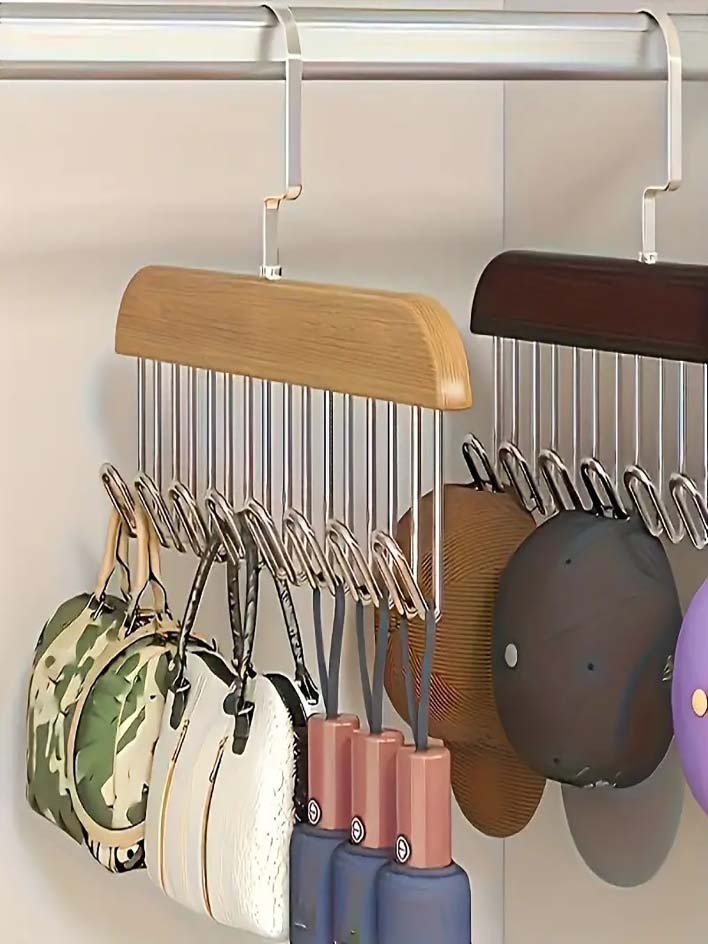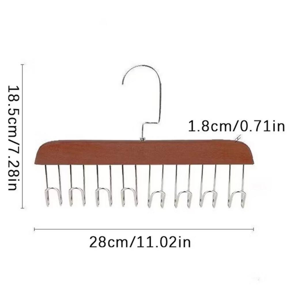 Kit 2/4 Cabide de Madeira Para Cintos Gravatas Cacheco Sutiãs Colares Organizador Geral Com 8 Gancho