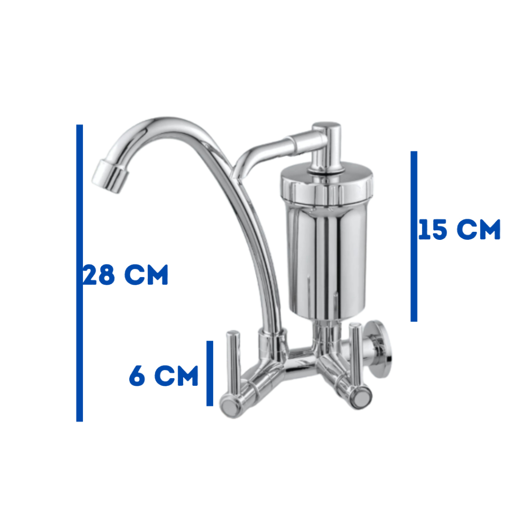 Torneira De Parede Para Cozinha Cromada ABS Com Filtro ¼ De Volta
