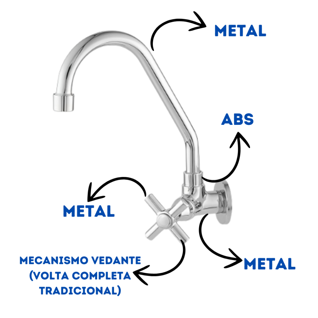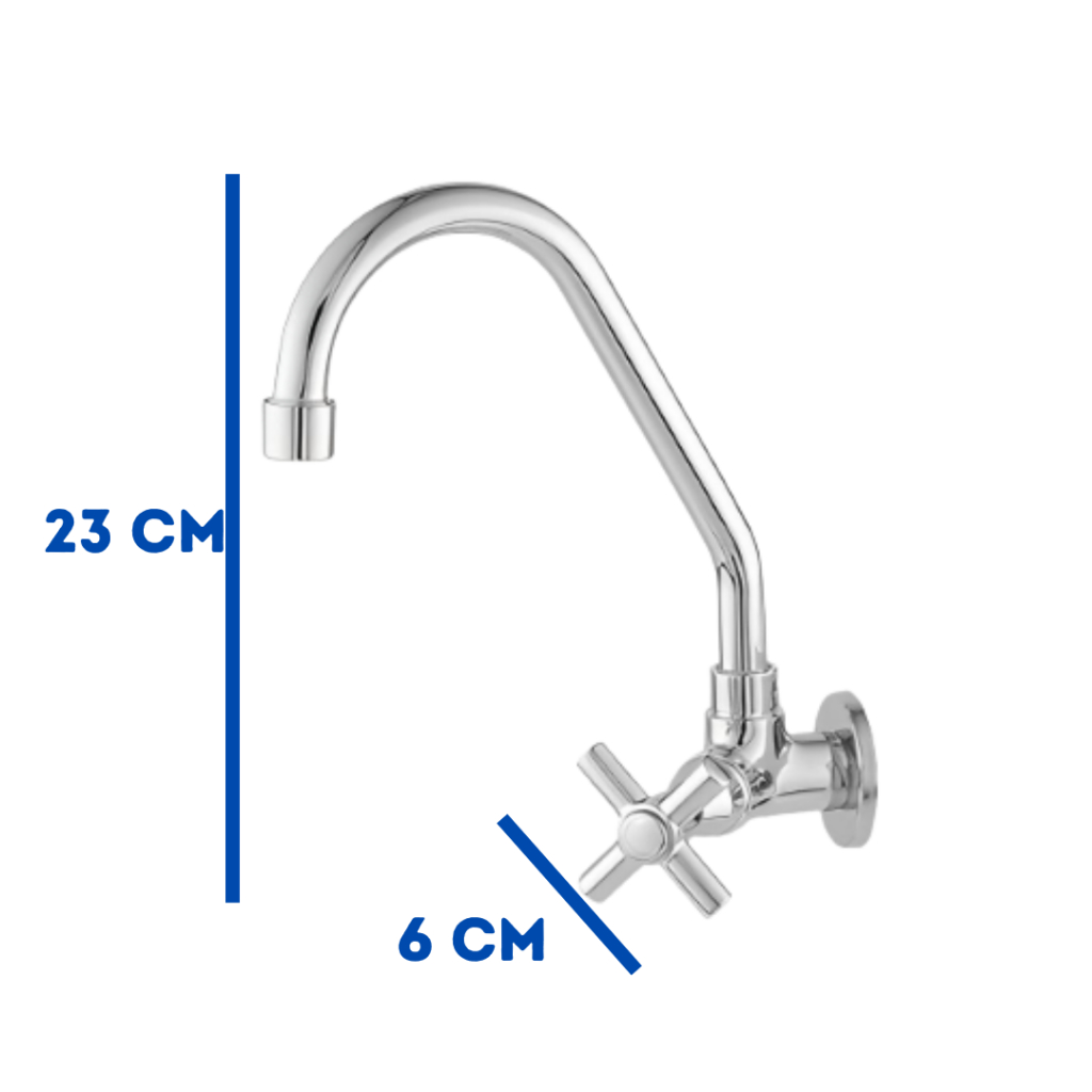 Torneira De Cozinha Para Parede Em Metal Cromada Vedante