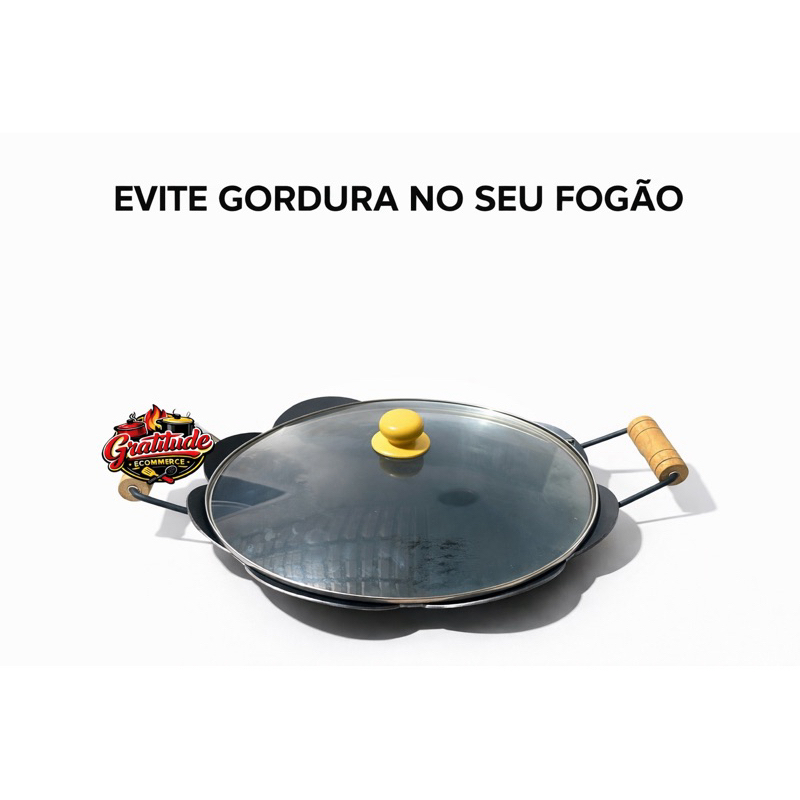 Disco de Arado Grande com ou sem Tampa de Vidro 52 cm de Alça a Alça Chapa Frigideira Fritadeira Tacho Rústico Original