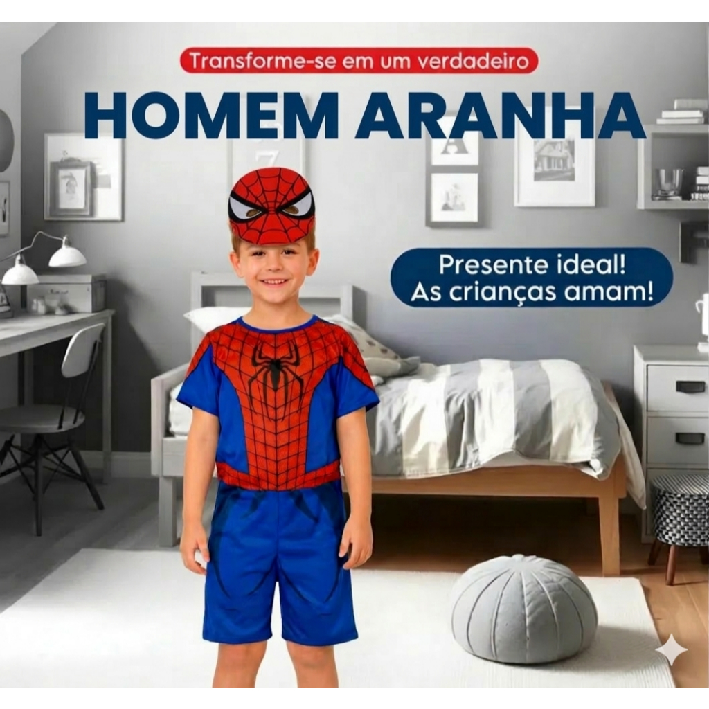Roupa Infantil Fantasia Festa Aniversário Personagens Homem Aranha