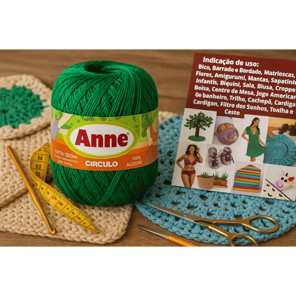 Kit 5 Linha Anne 500 Metros 295 TEX Fio 100% Algodão Circulo Para Crochê Tricô Bordado Bico Barrado