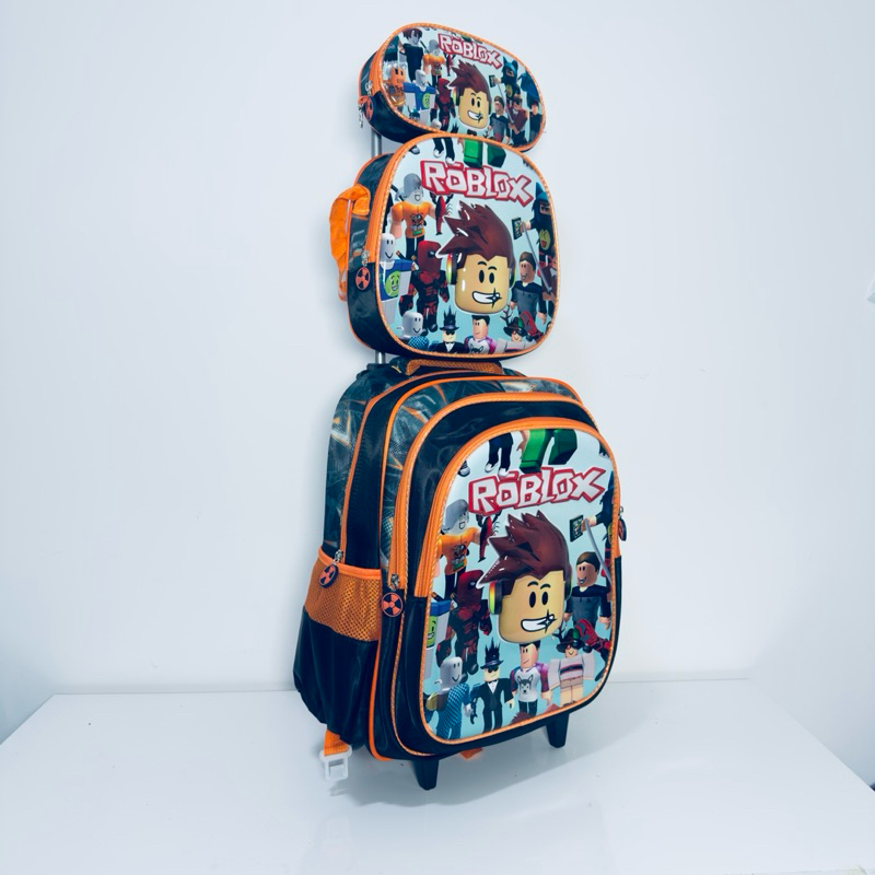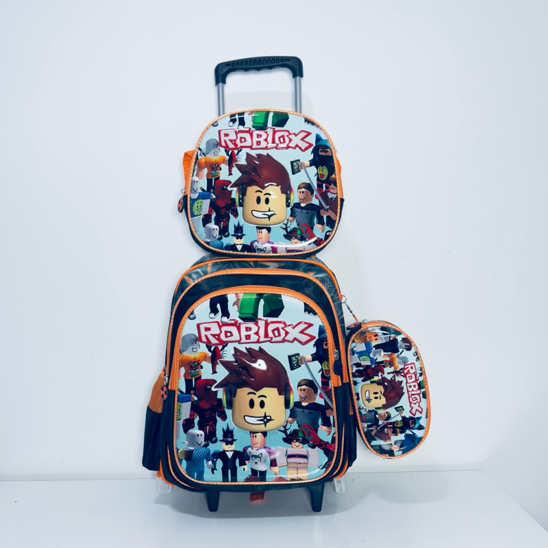 Mochila Roblox Masculino com Rodinhas + Lancheira + Estojo | Mochila Escolar Infantil Original Roblox | Volta às Aulas
