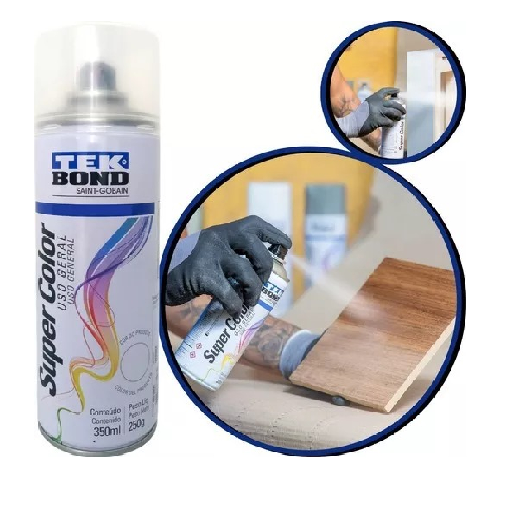 Verniz Spray Brilhante Tekbond Super Color 350ml Versátil Protege Acabamento Brilhoso
