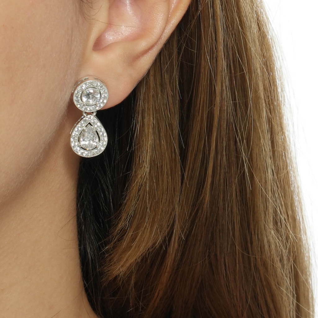 Brinco Prata 925 Noiva com Zircônias na cor Cristal Brinco Feminino Leve Combina com o Vestido da Noiva
