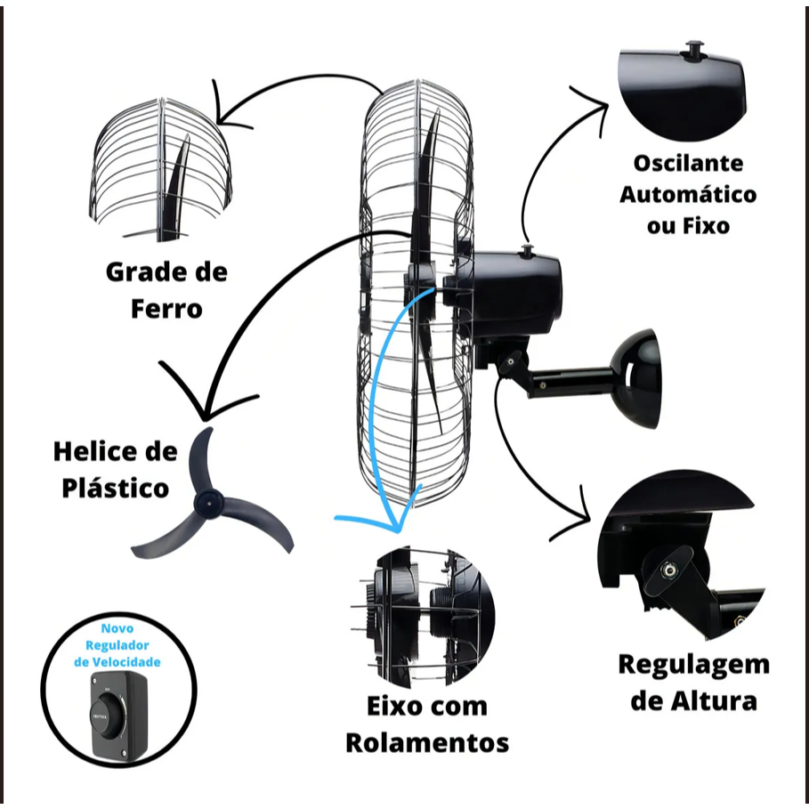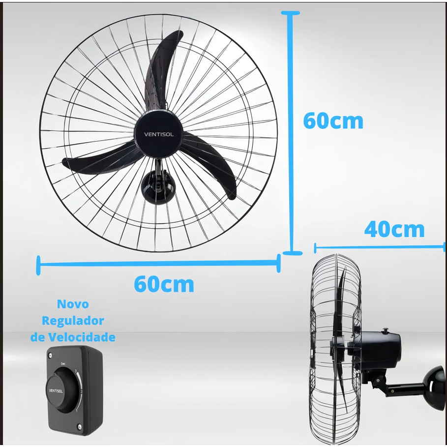 Ventilador Parede 60 cm New Preto 127V/220V Premium Ventisol