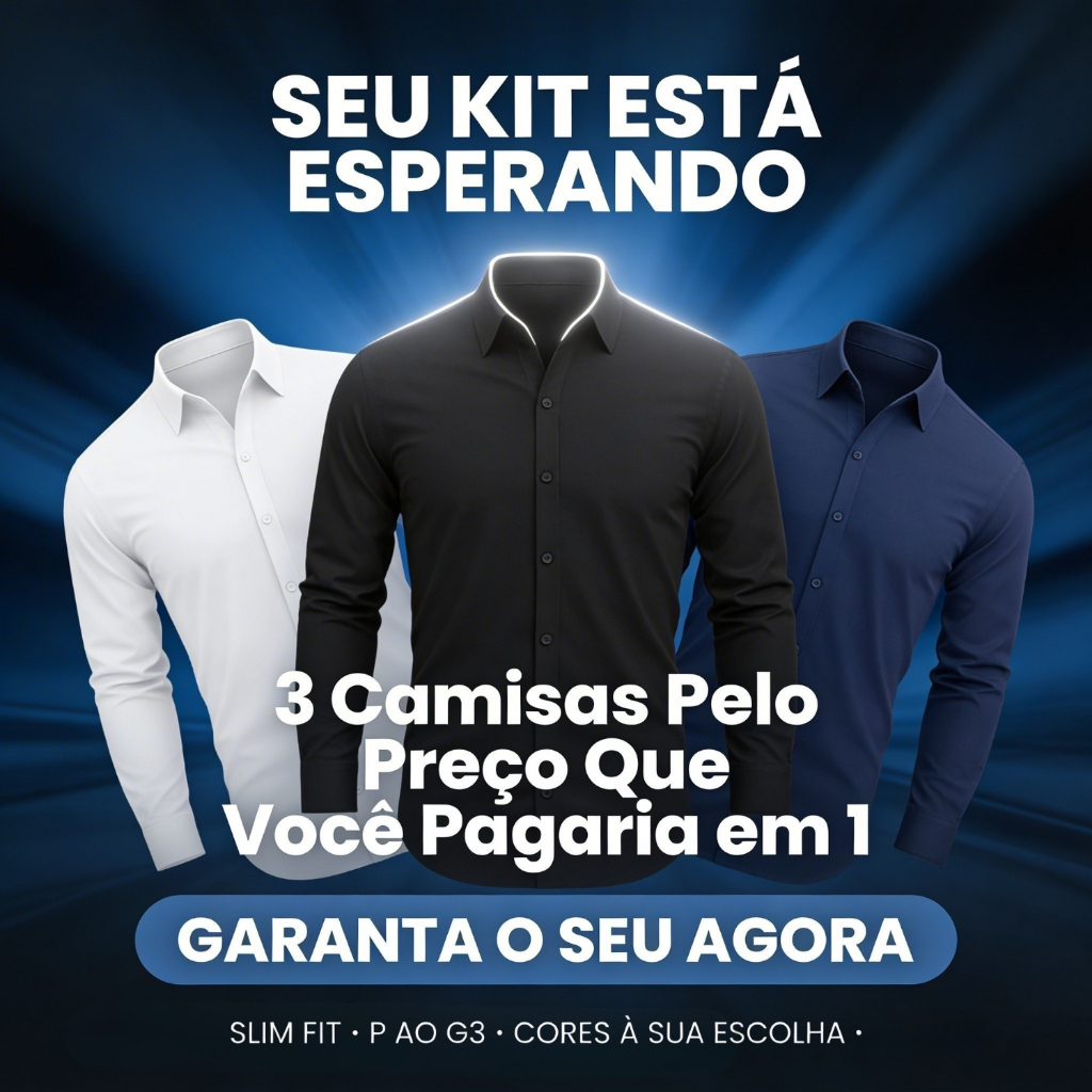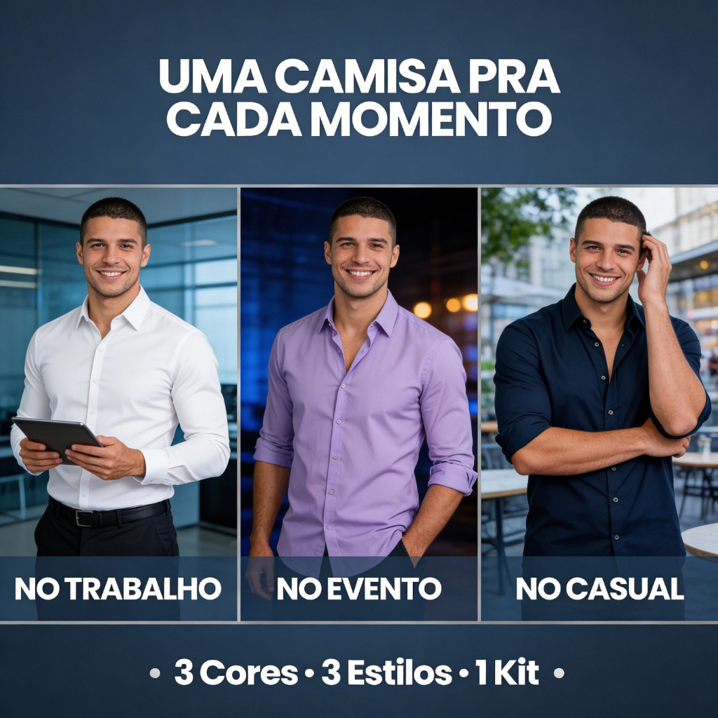 Kit 3 Camisa Social Slim Lisa Masculina Manga Longa Plus Size