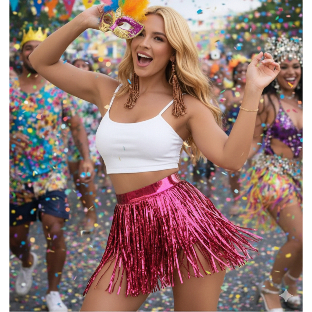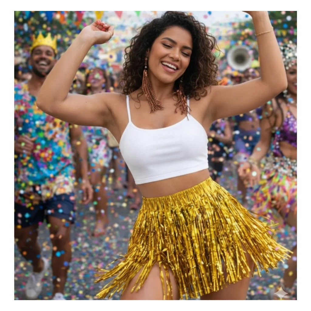 Saia Bloquinho De Fitas Metalizada Fitilho Colorida 40cm Festa Carnaval Fantasia