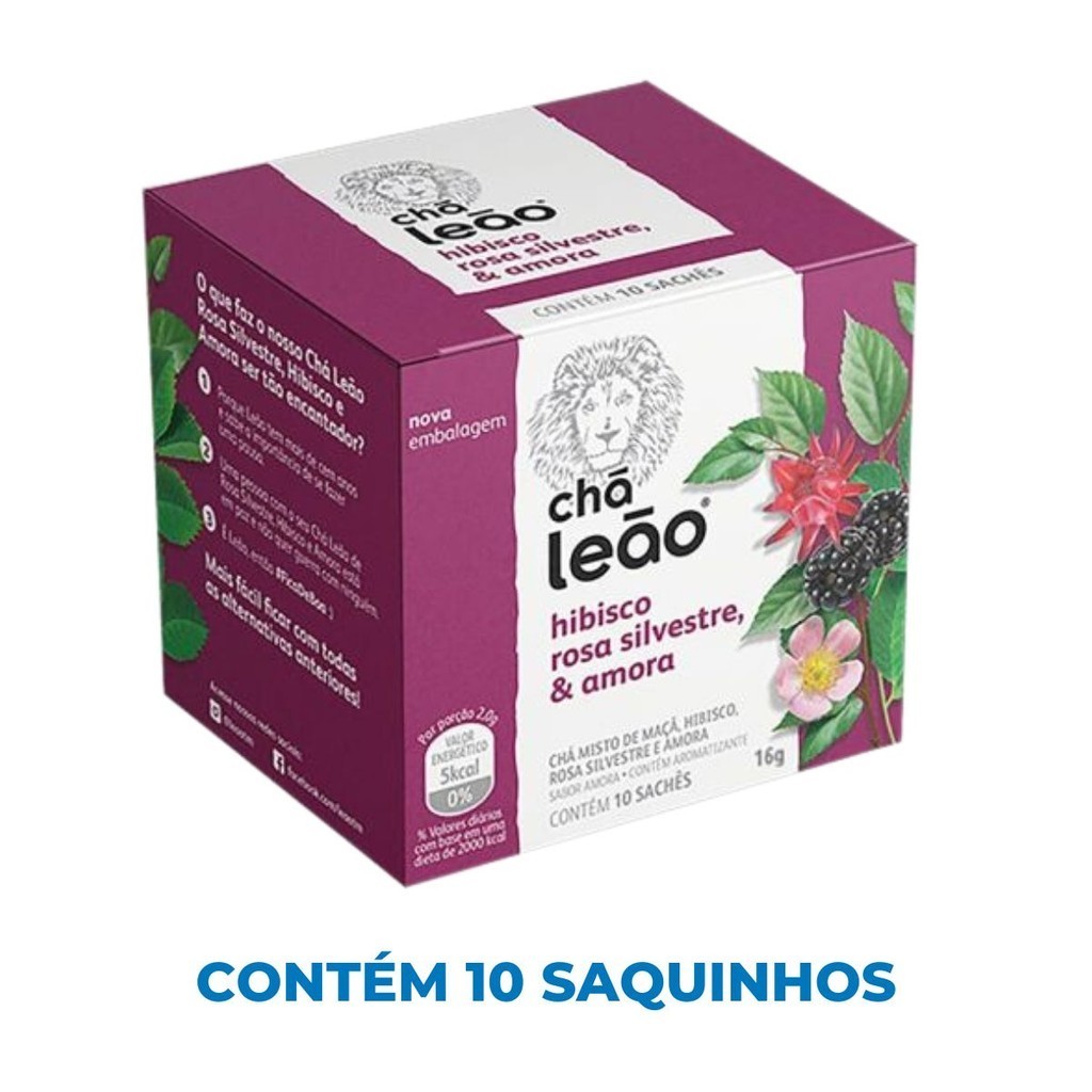 Chá Leão Hibisco, Rosas Silvestres e Amora com 10 Sachês Linha Frutas e Flores