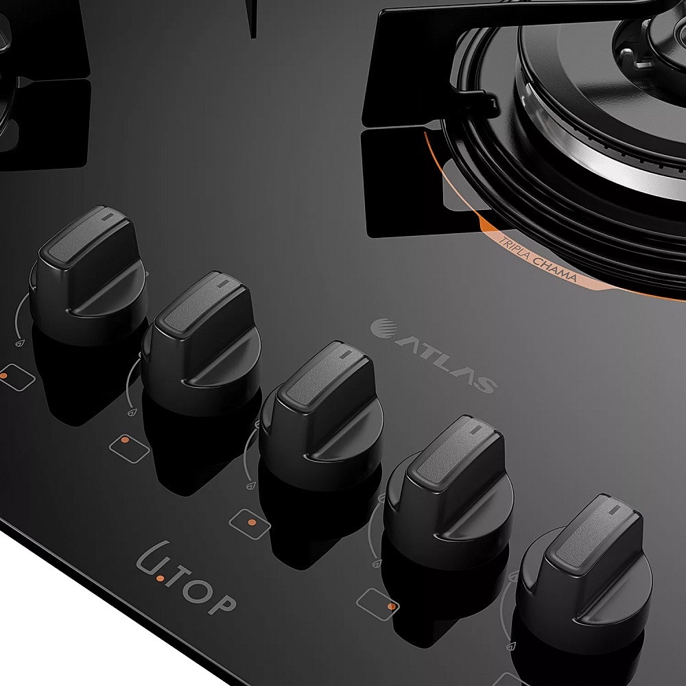Cooktop 5 Bocas U Top com Mesa de Vidro e Tripla Chama Atlas