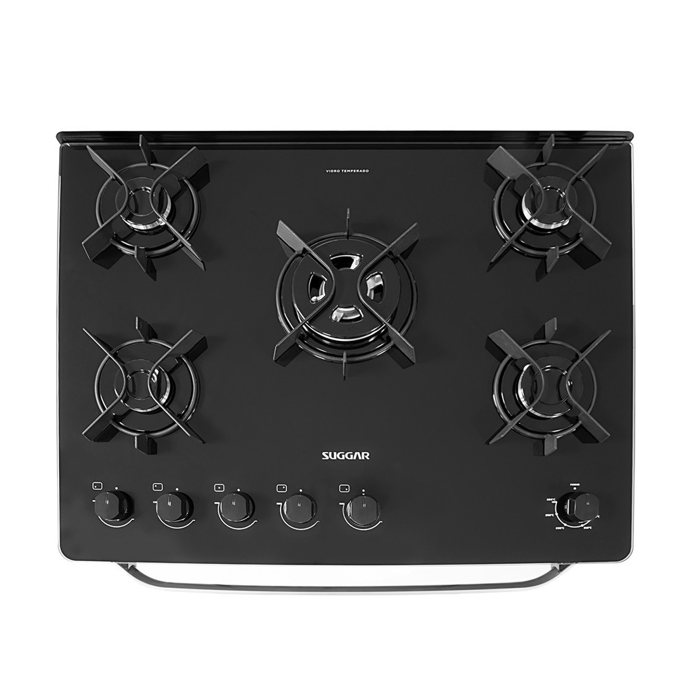 Fogão FGVMG510PT Max Glass 5 Bocas Mesa de Vidro Temperado Suggar