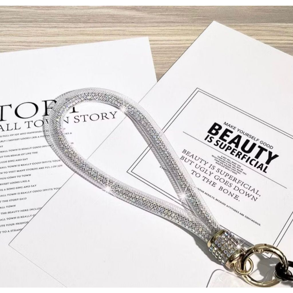 Pulseira Salva Celular Brilho Pedrinhas com Proteção de Redinha Para iPhone Android Cordinha Color