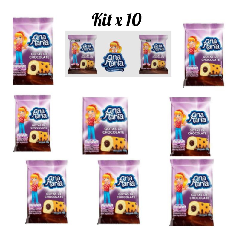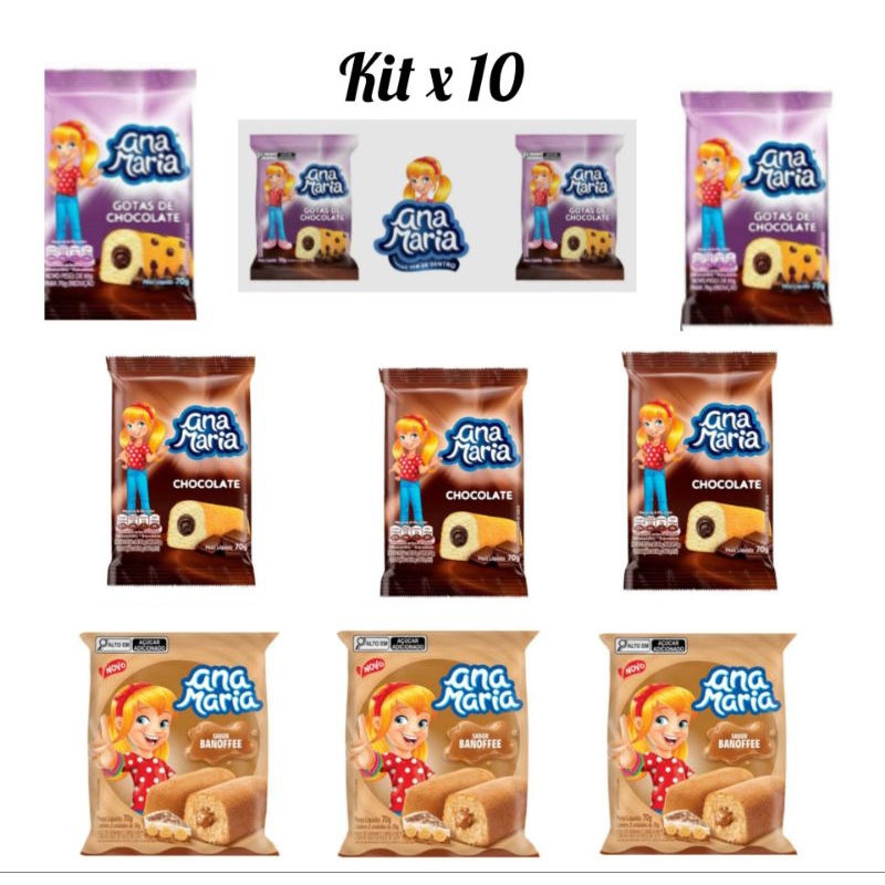 Kit 10 Bolo Ana Maria 70g Deliciosos Sabores Gotas de Chocolates Banoffe Chocolate- Envío Imediato