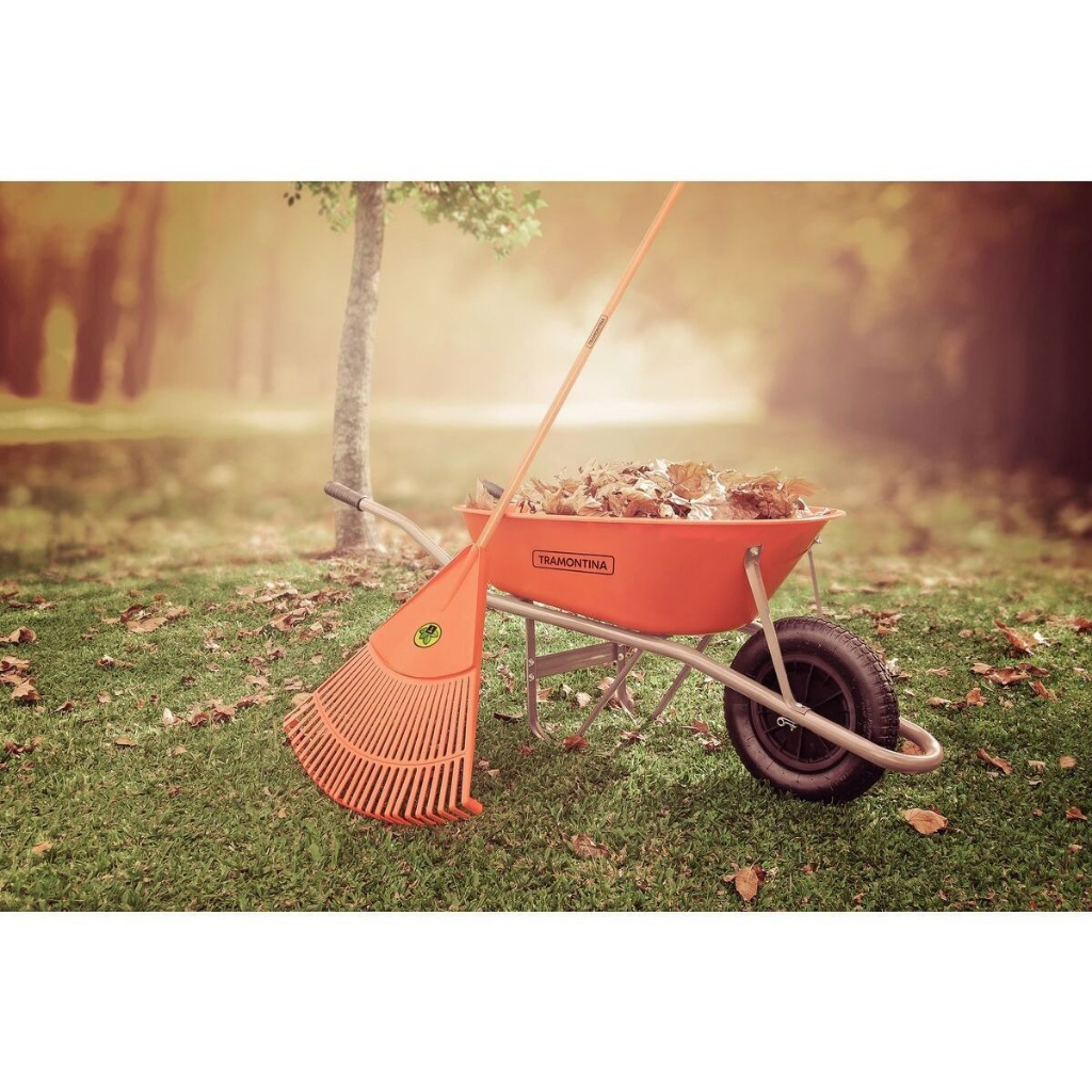 Vassoura Plástica Laranja Tramontina Com 26 Dentes Sem Cabo Rastelo Plástico Grama Seca Folhas