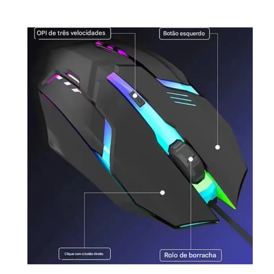 Mouse com fio LED RGB Antiderrapante Kit gamer barato Acessórios gamer para PC LED JOGOS