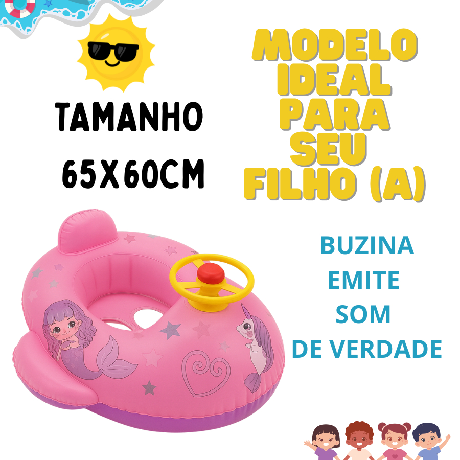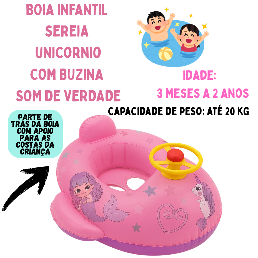 BOIA DE CINTURA BEBEZINHO AZUL E ROSA BOIA DE PEIXINHO COM BUZINA Infantil com Assento e Volante Modelo SEREIA UNICORN