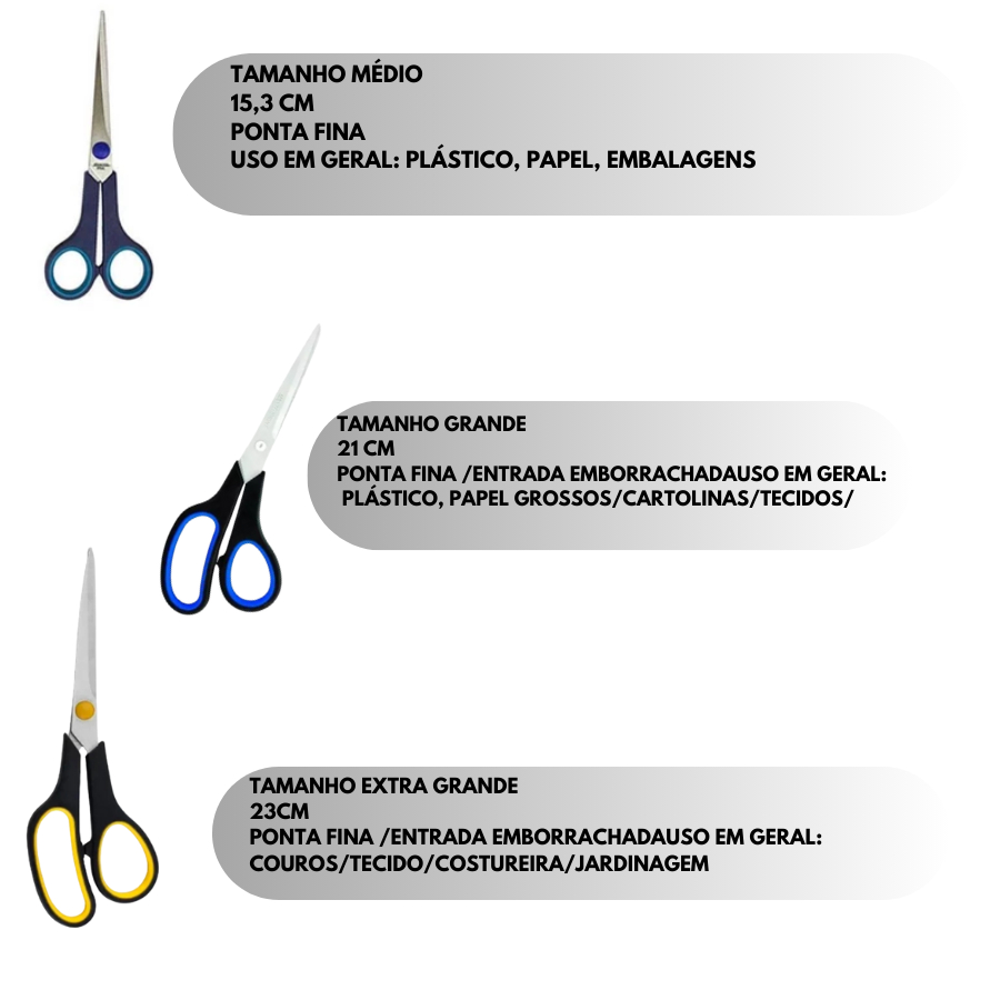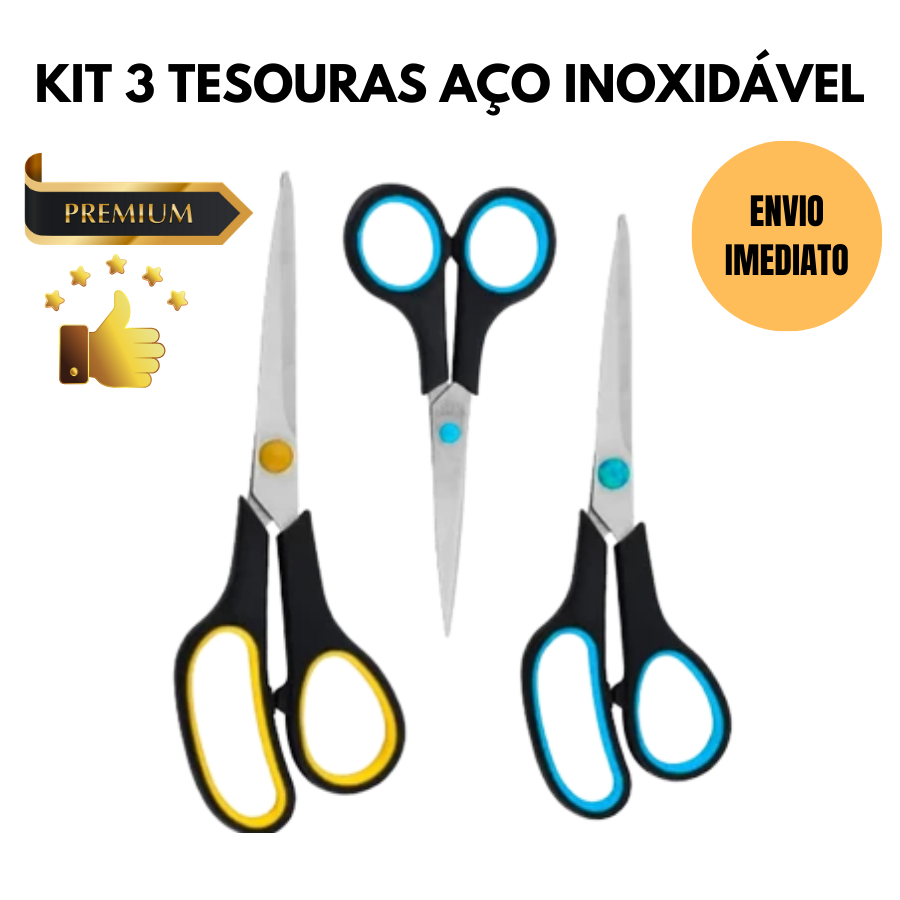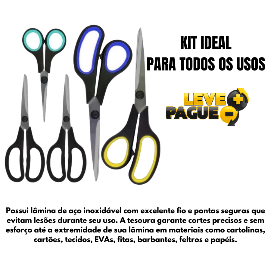 Kit 5 Tesouras de Aço Inoxidável Multiuso e Alta Durabilidade tesoura dia dia grande pequena tesoura para ter em casa