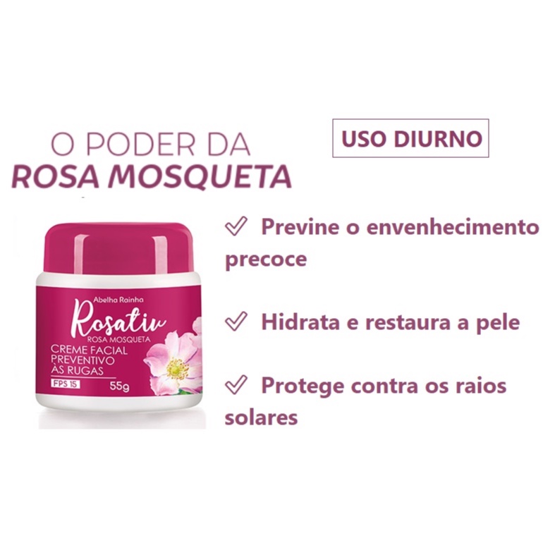 Creme Facial Preventivo Às Rugas Com Óleo De Rosa Mosqueta Rosativ - Abelha Rainha 55g