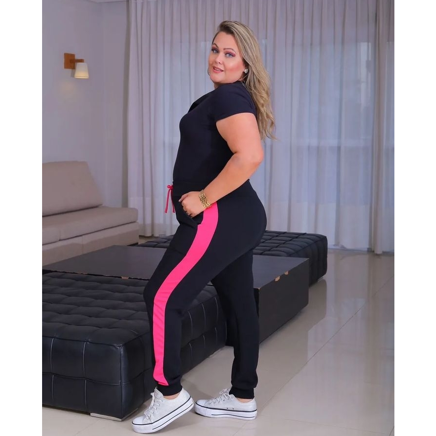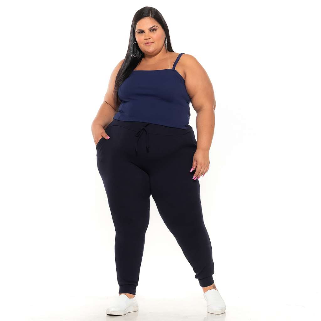 Calça Plus Size Feminina Jogger Malha Crepe Com Lycra Varias Cores Envio Imediato