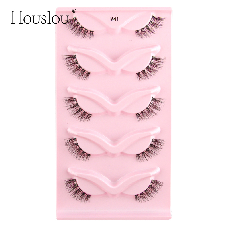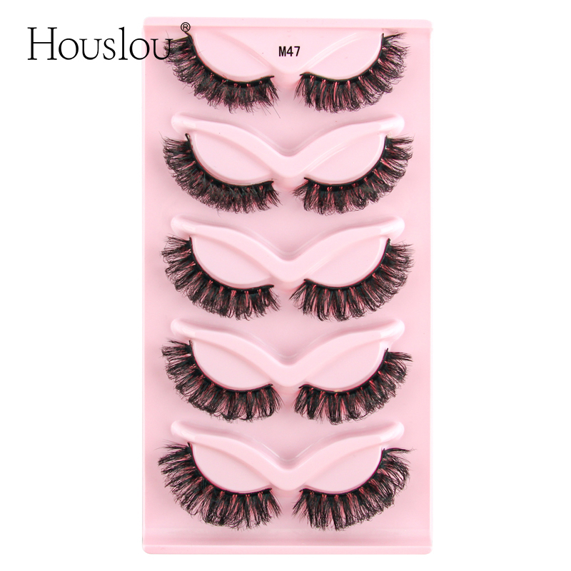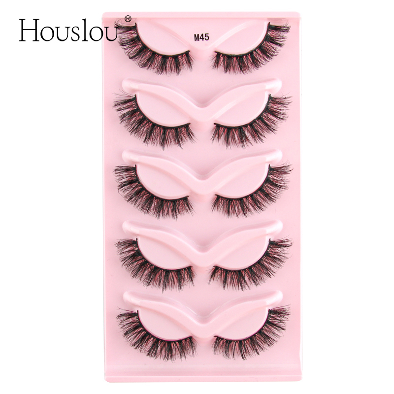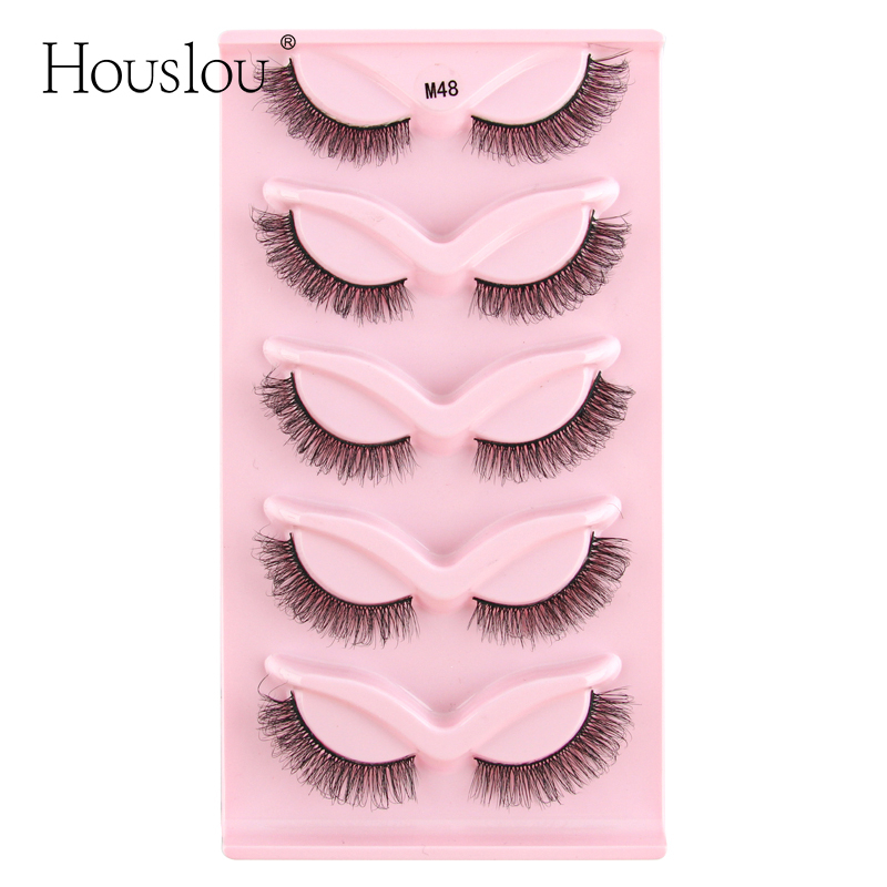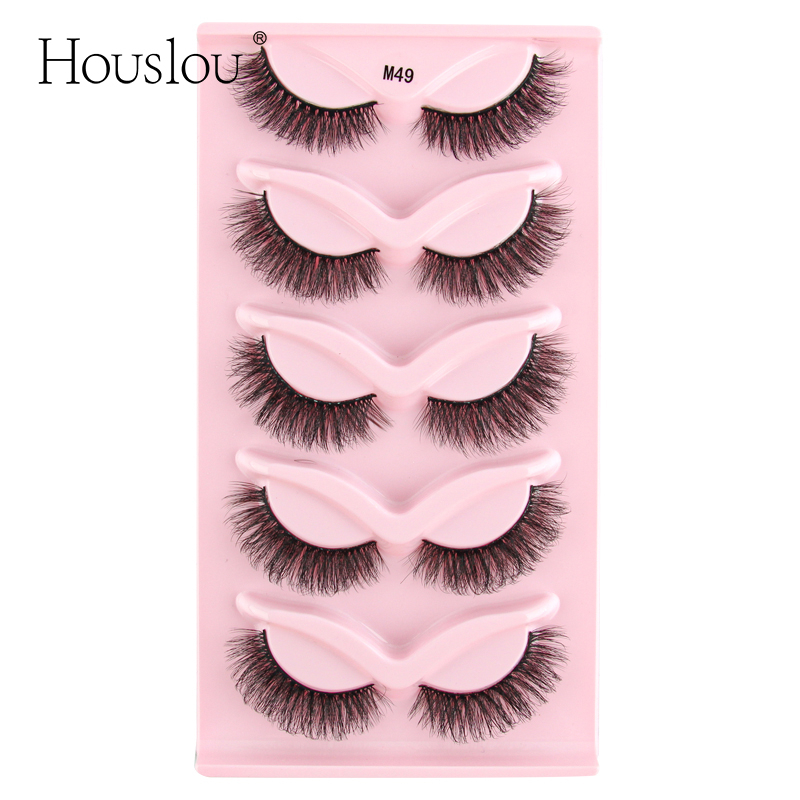 Houslou 5 Pares Pestanas De Olho De Gato 3D Fofo De Mink Full Strip Cílios/Meia Extensões De Longas Naturais