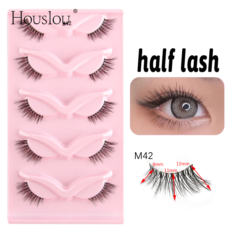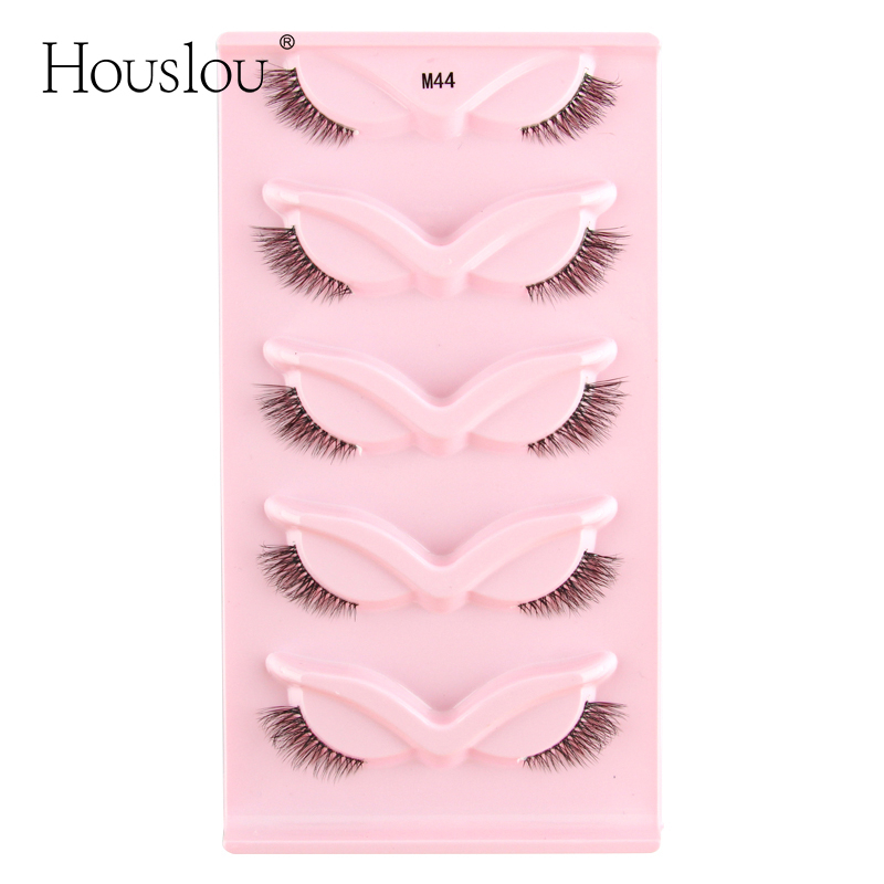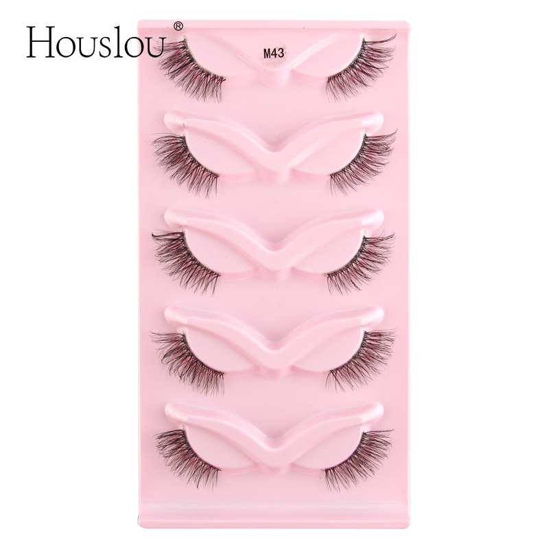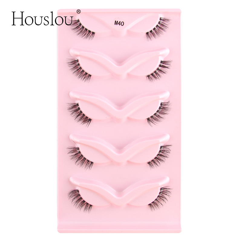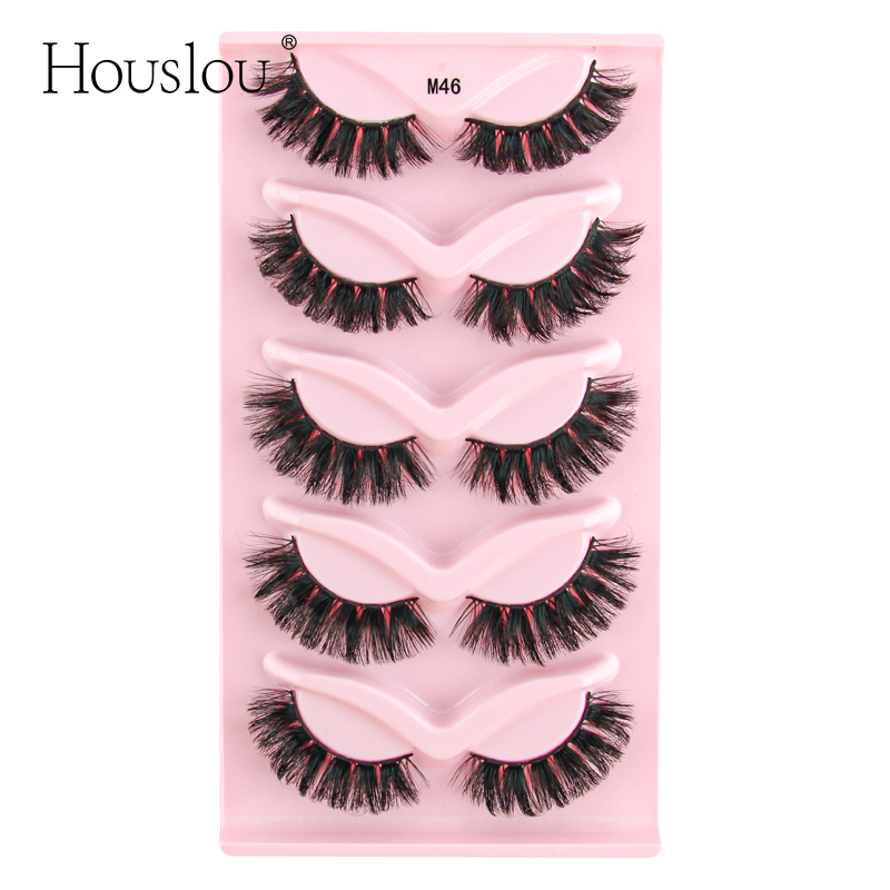 Houslou 5 Pares Pestanas De Olho De Gato 3D Fofo De Mink Full Strip Cílios/Meia Extensões De Longas Naturais