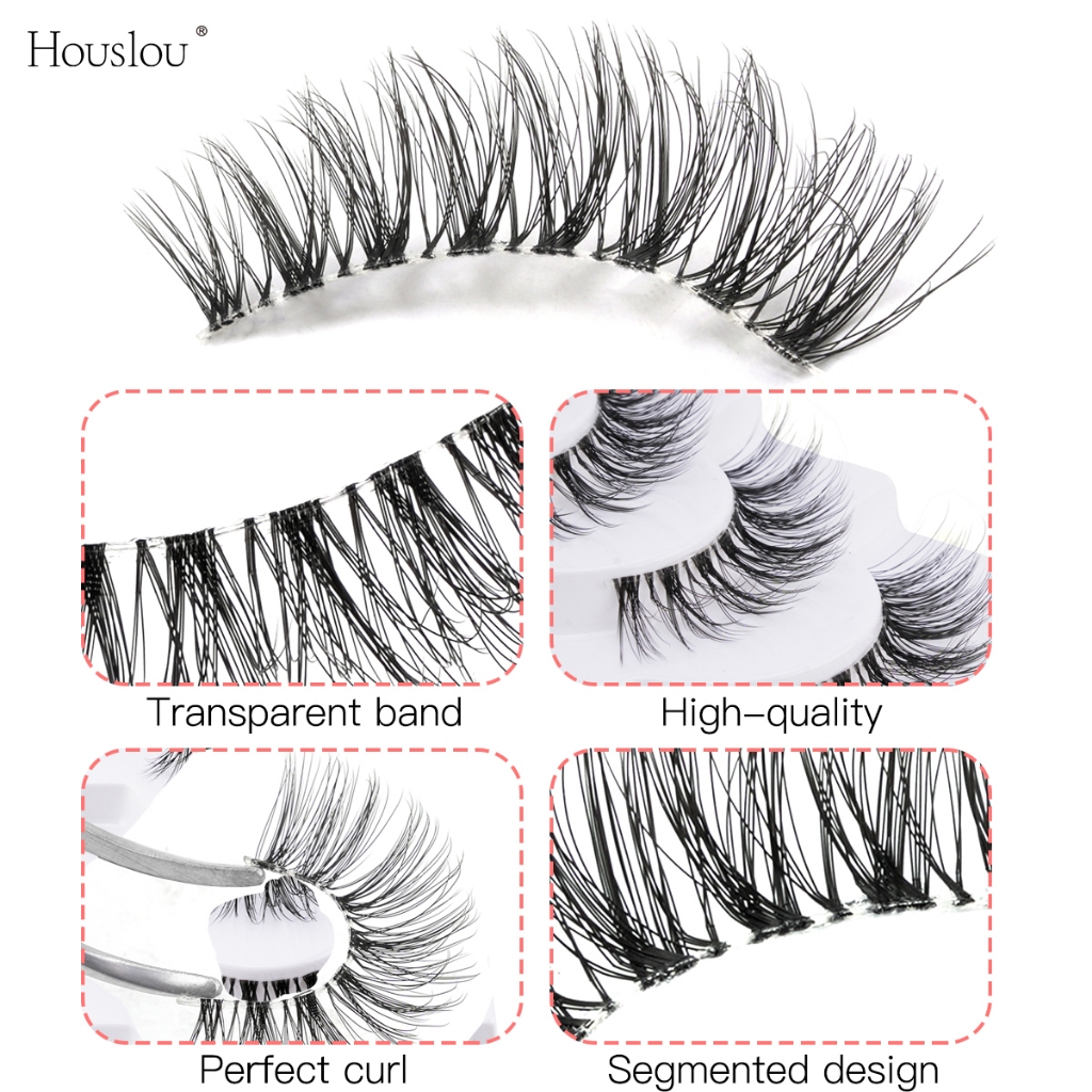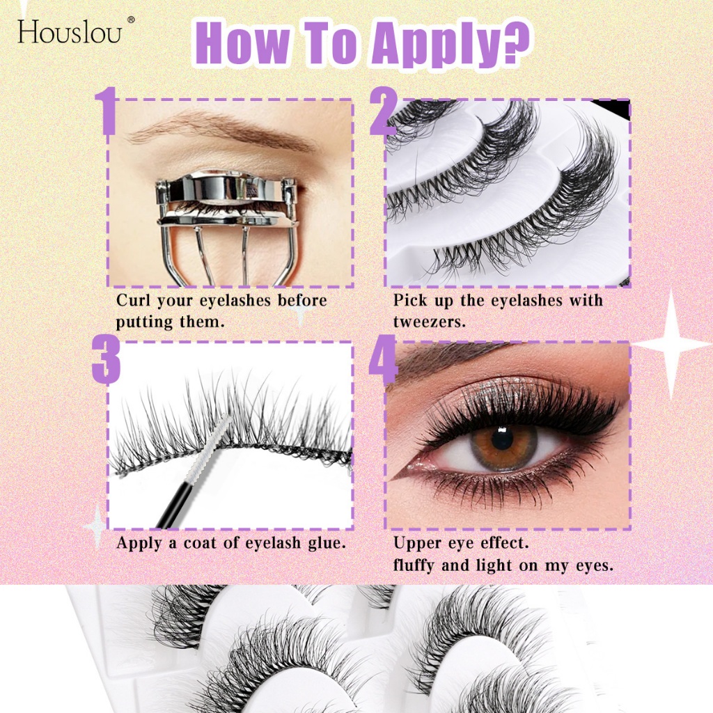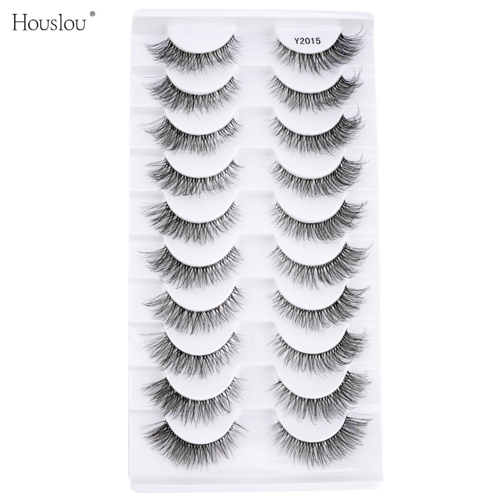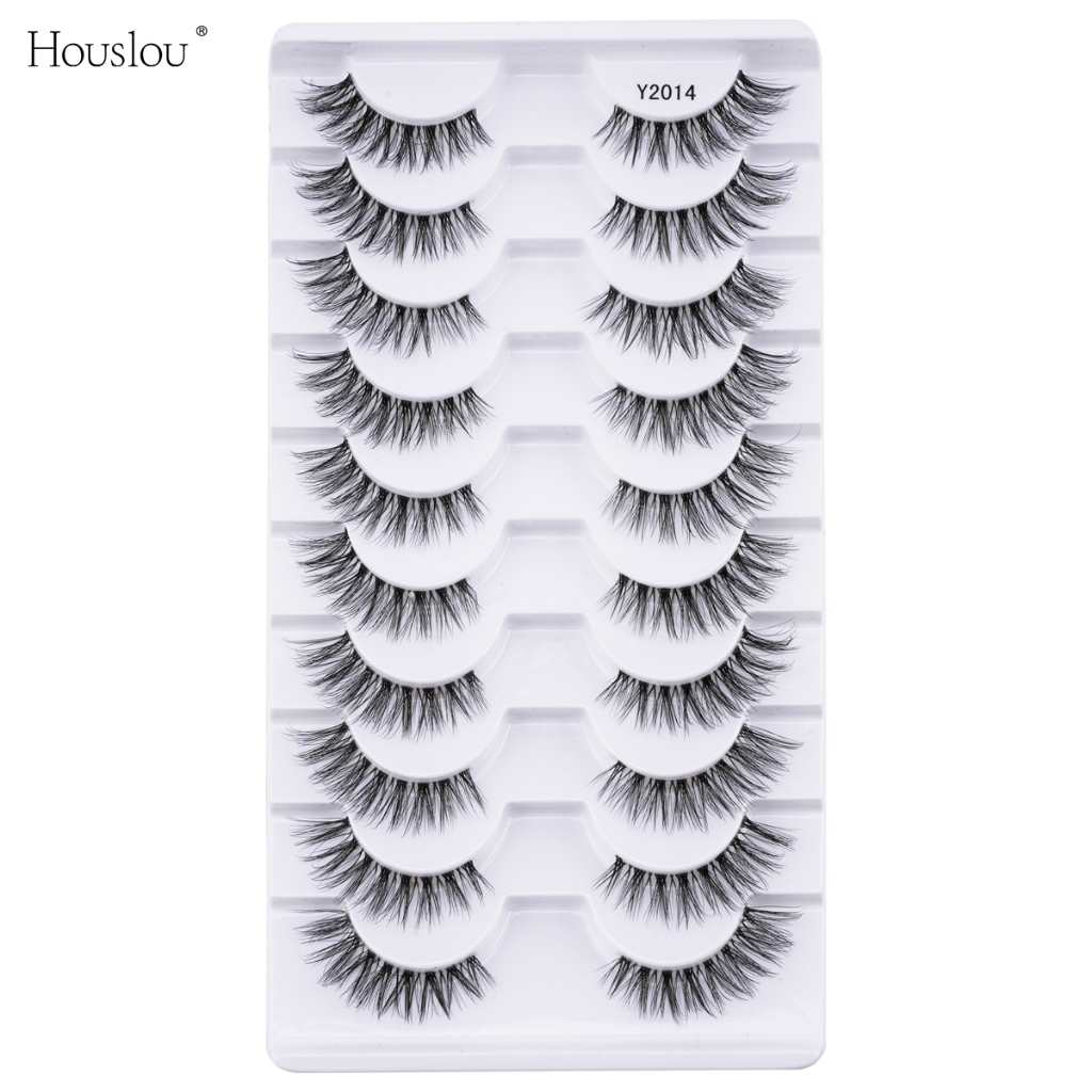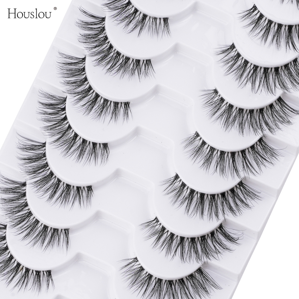 Houslou Cílios Postiços Fofos Naturais Longos 10 Pares Finos Faixa Transparente