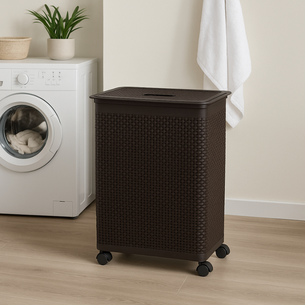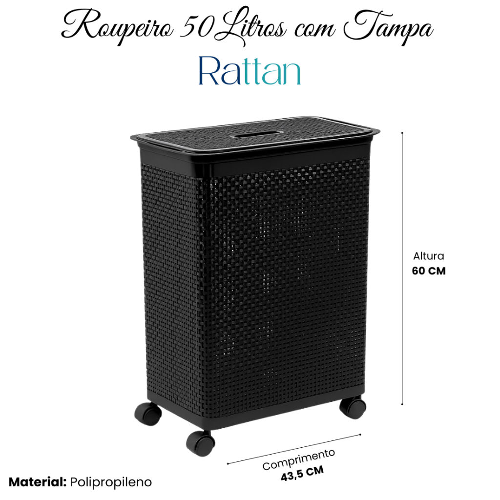 Cesto Organizador Rattan com Rodas Roupeiro 50L Niquelart N625