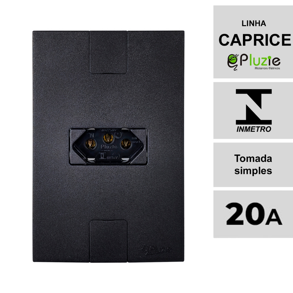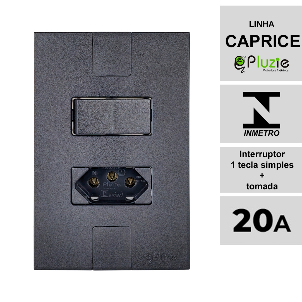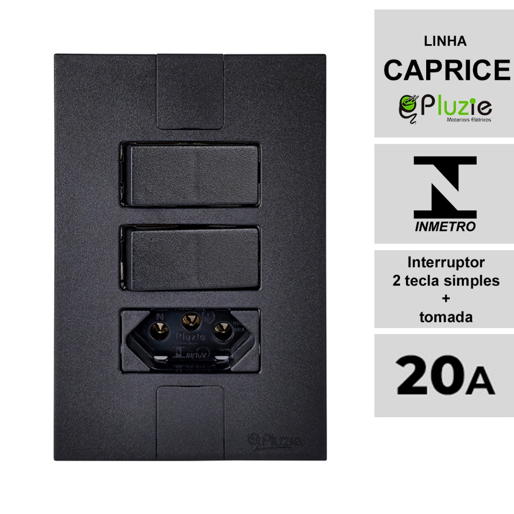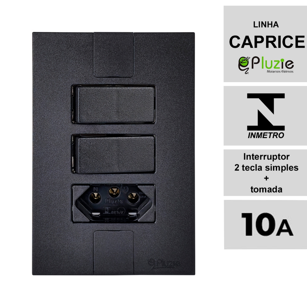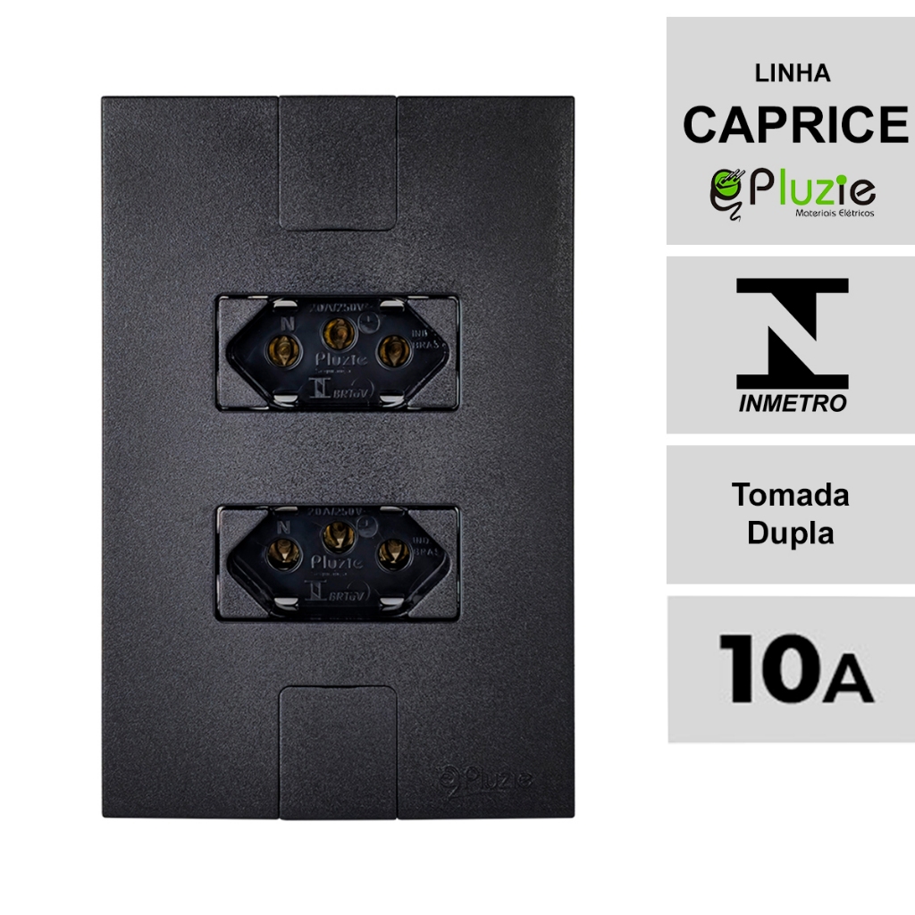 Interruptor e Tomada Pluzie linha Caprice preta fosca modular 4x2