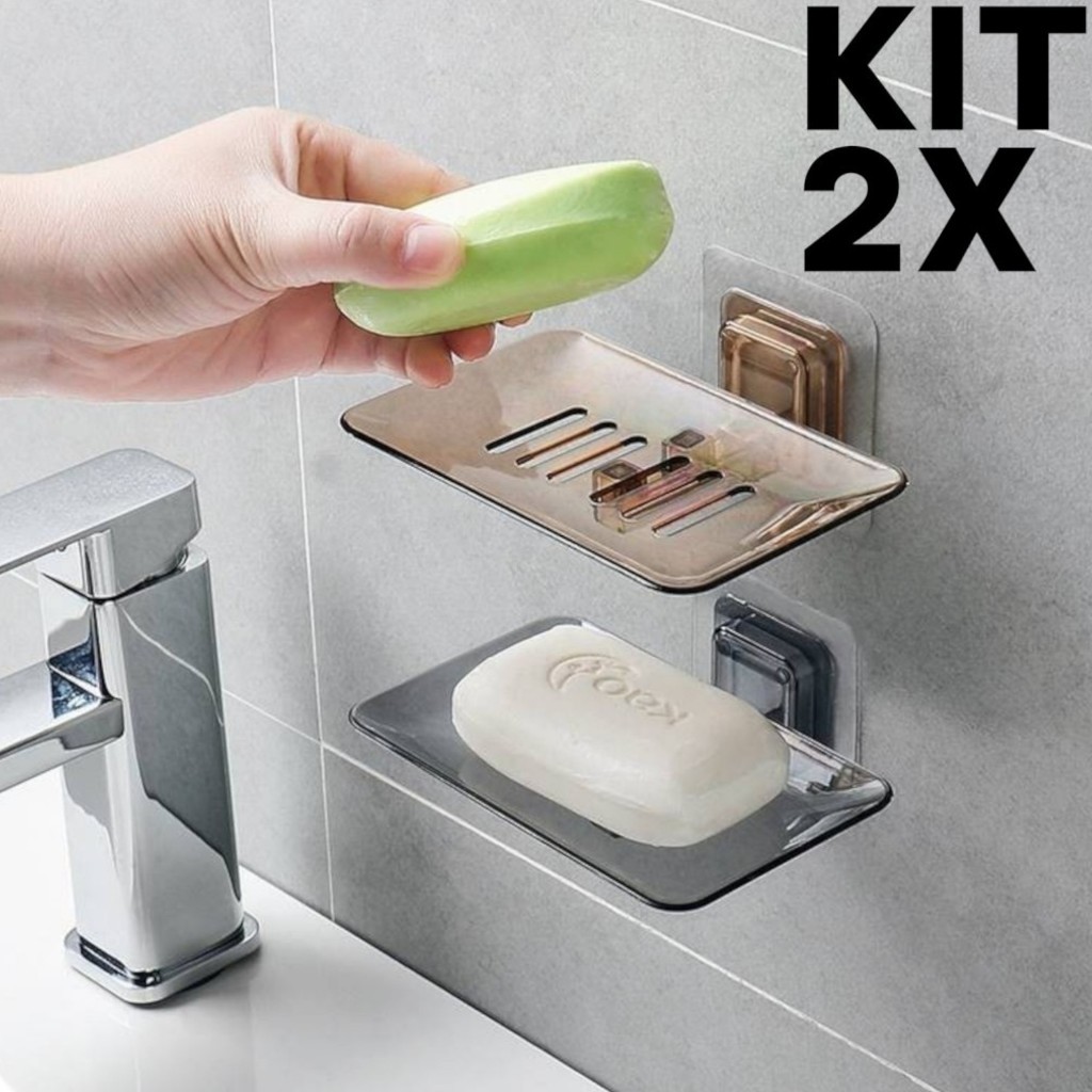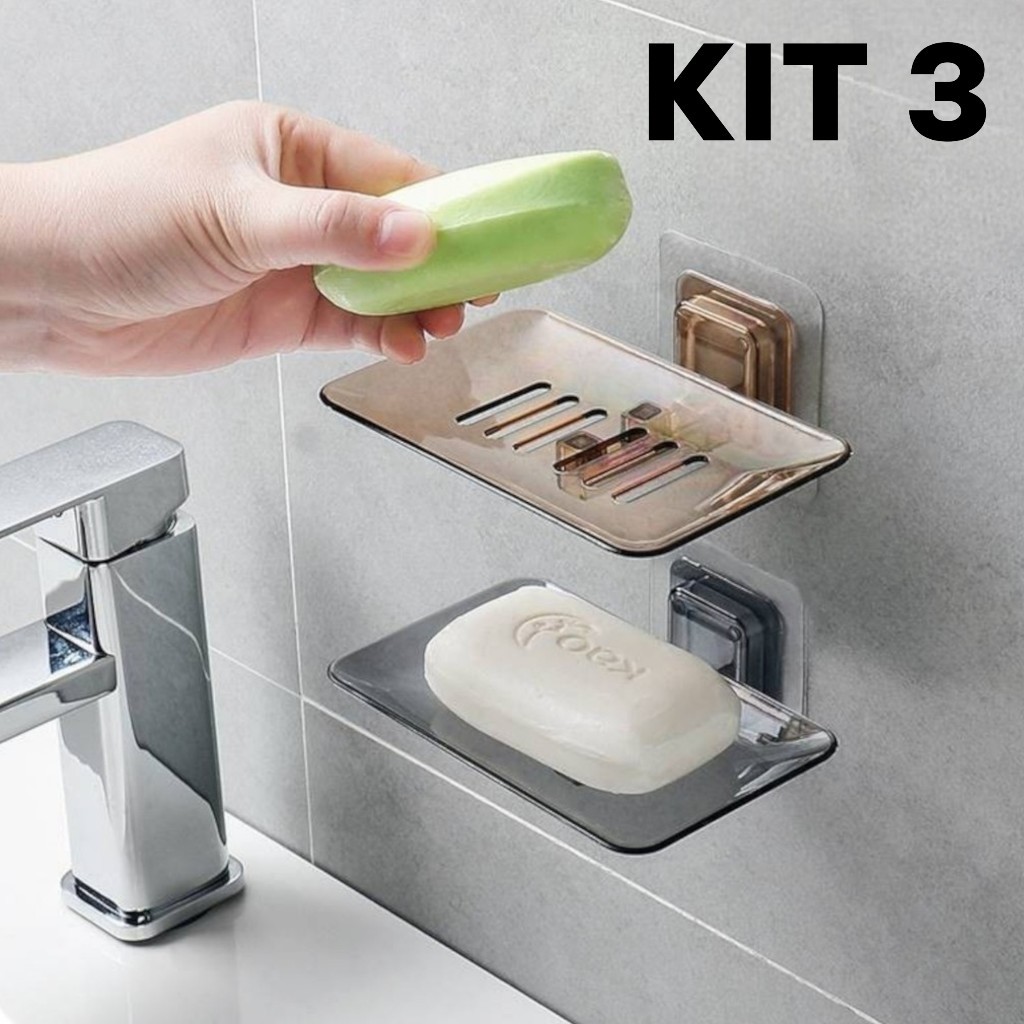 Saboneteira Transparente Para Parede com Drenagem e Adesivo Sem Perfuração Banheiro