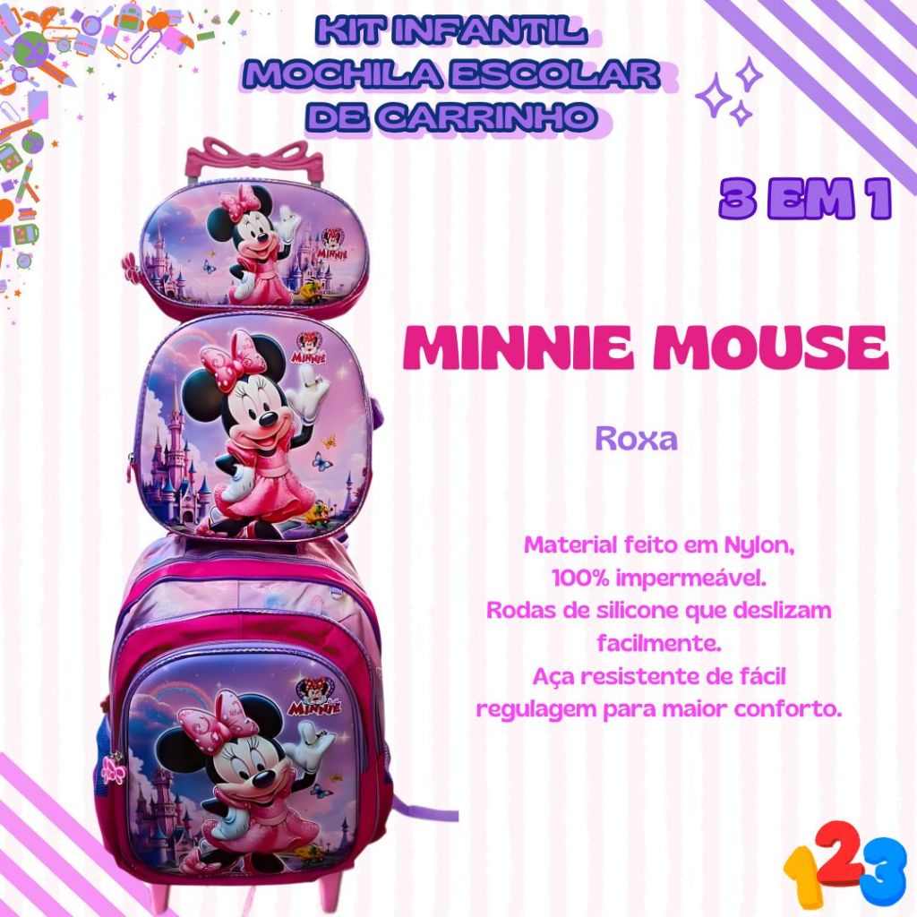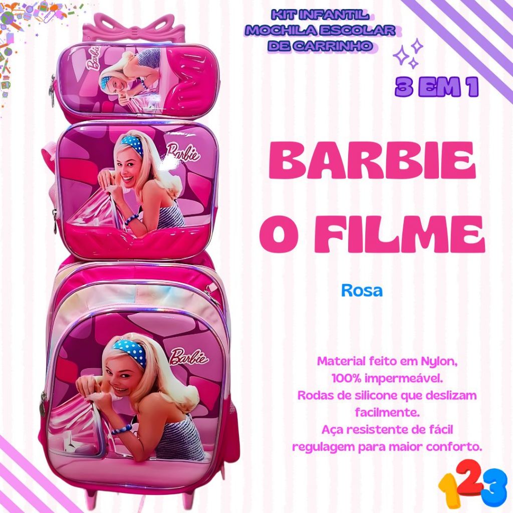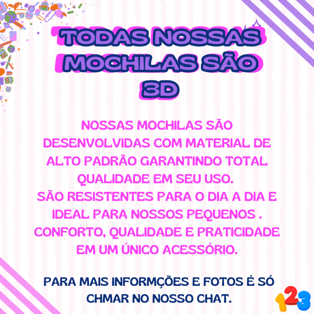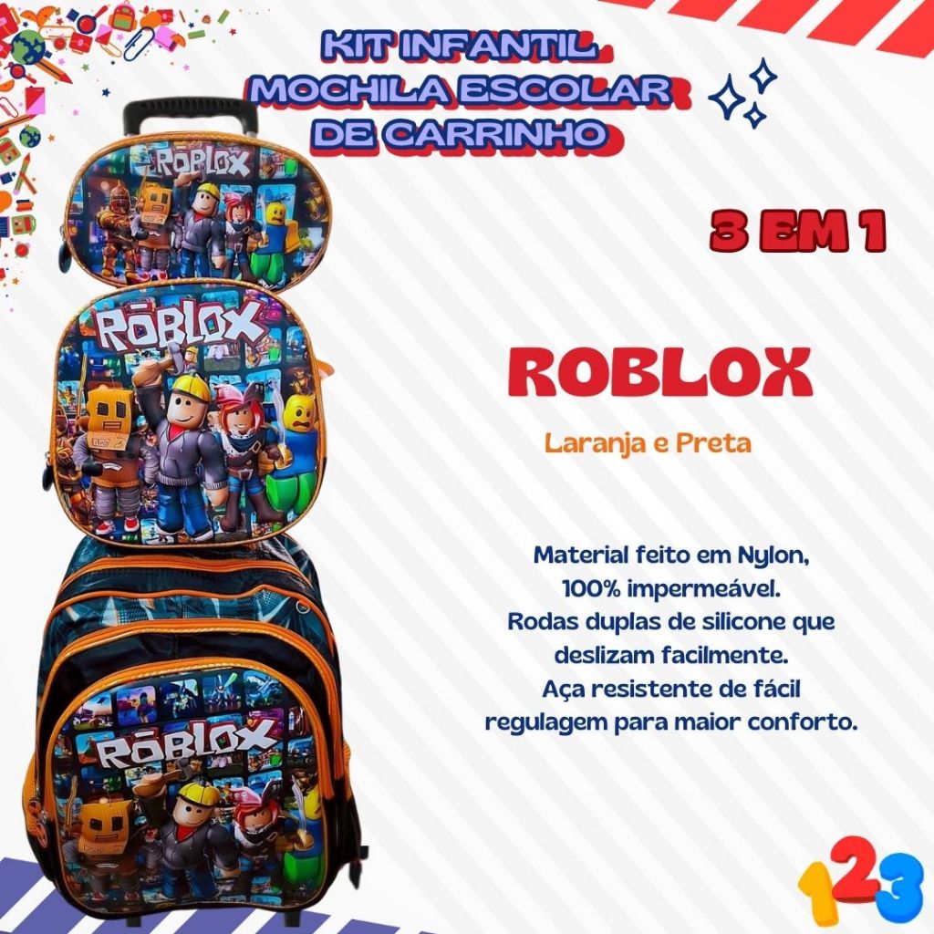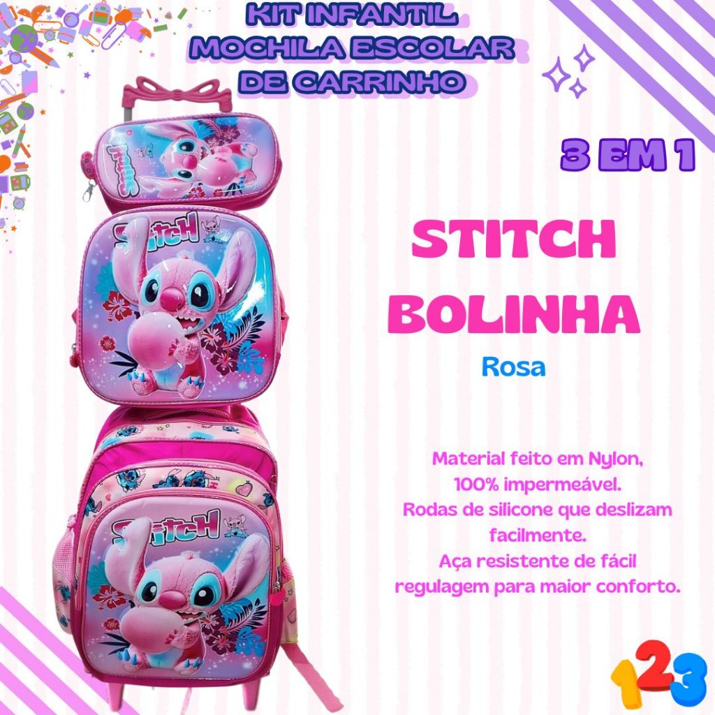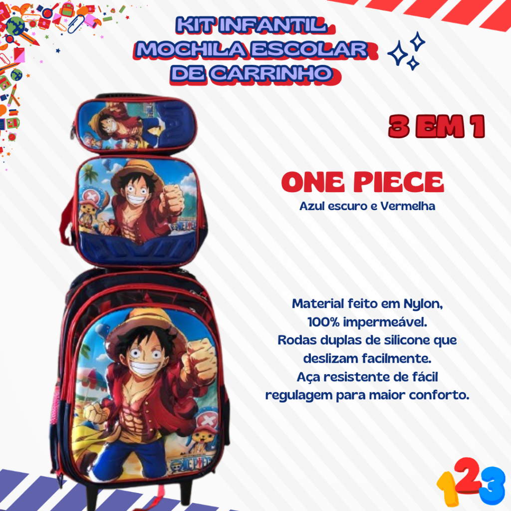 Mochila Escolar com Carrinho 3D para Menina e Menino - Kits com 3 peças Lancheira e Estojo Impermeável Desenhos Diversos