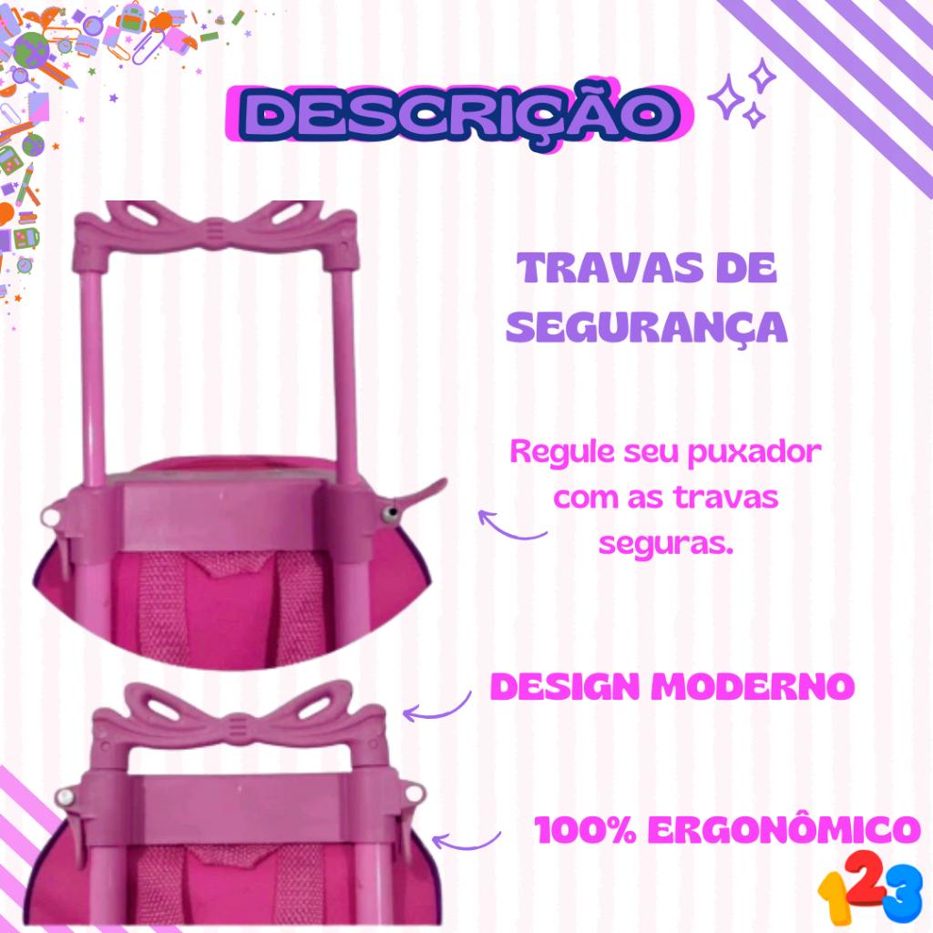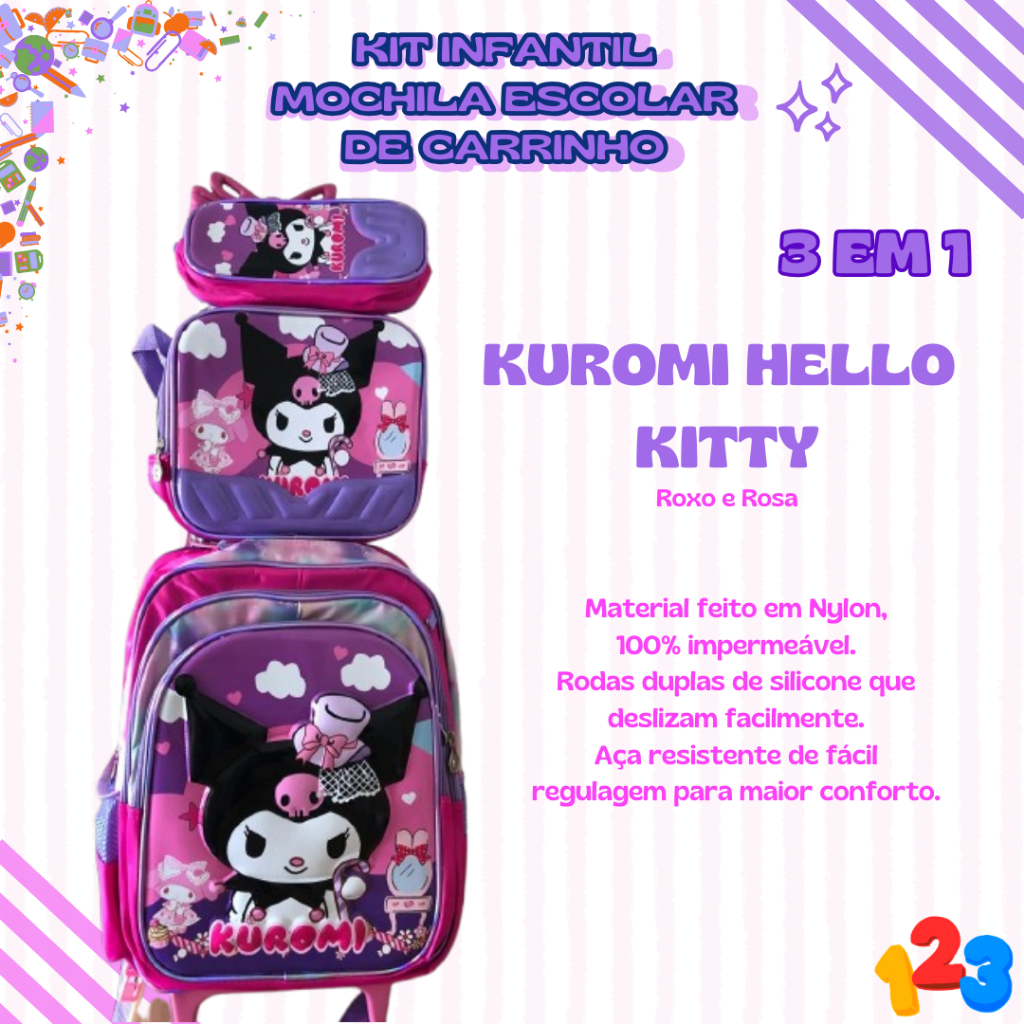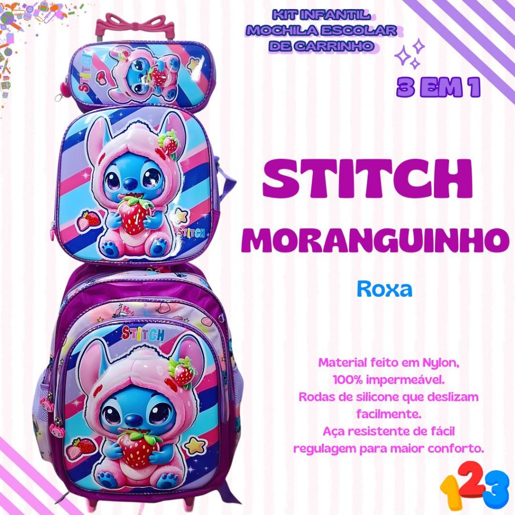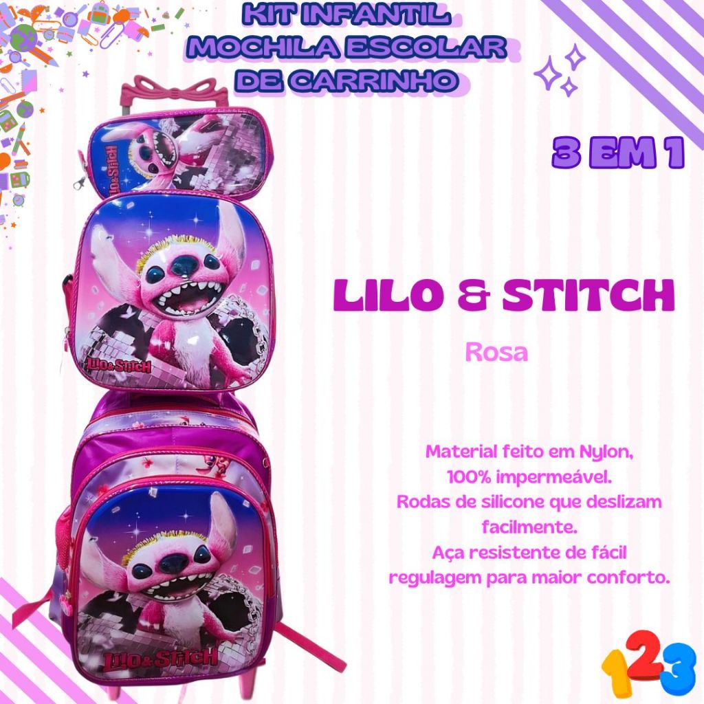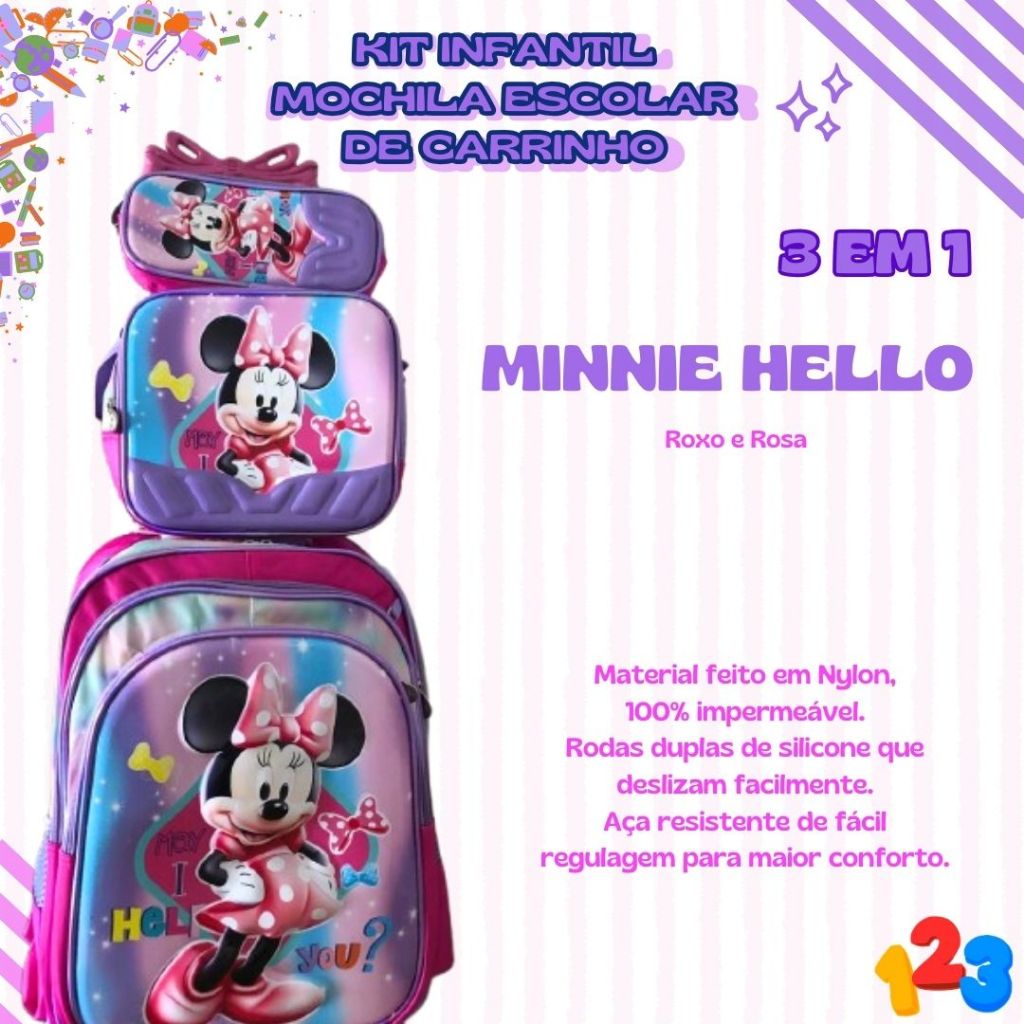 Mochila Escolar com Carrinho 3D para Menina e Menino - Kits com 3 peças Lancheira e Estojo Impermeável Desenhos Diversos