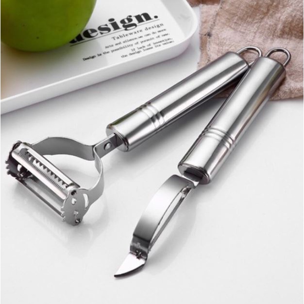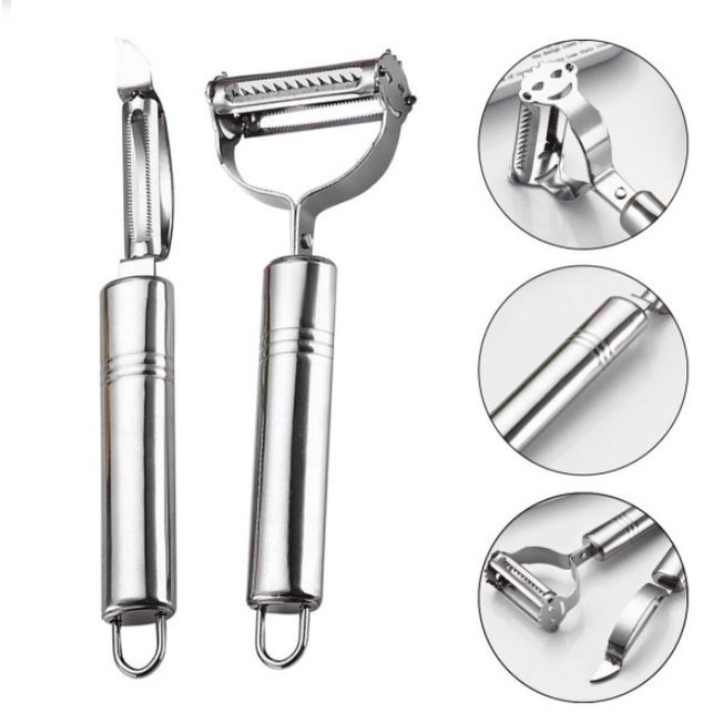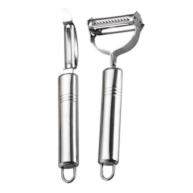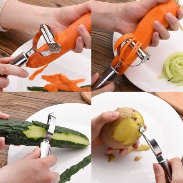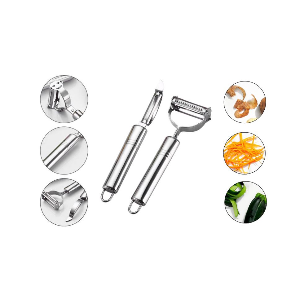 Kit Descascador Fatiador Inox Legumes Frutas Dupla Lâmina Móvel