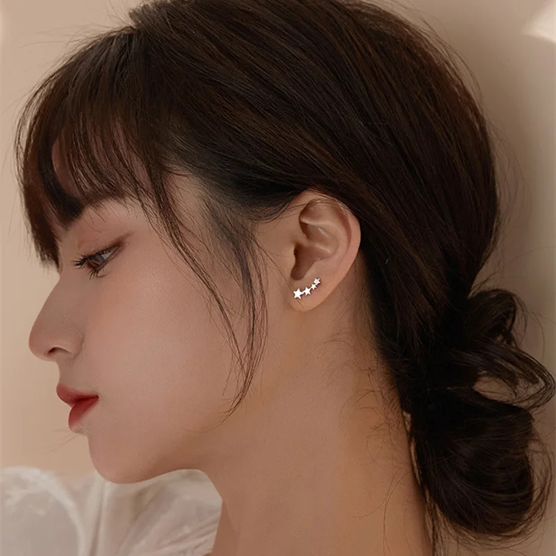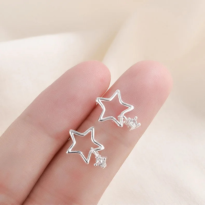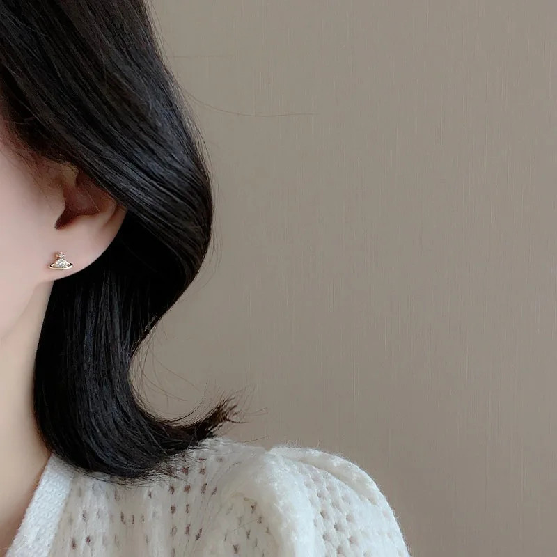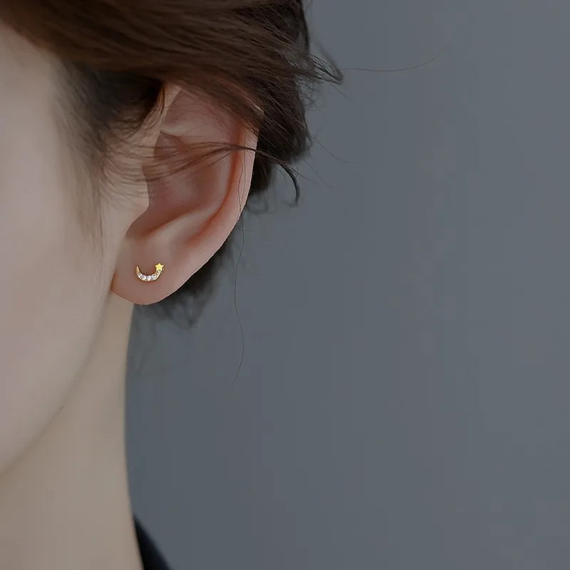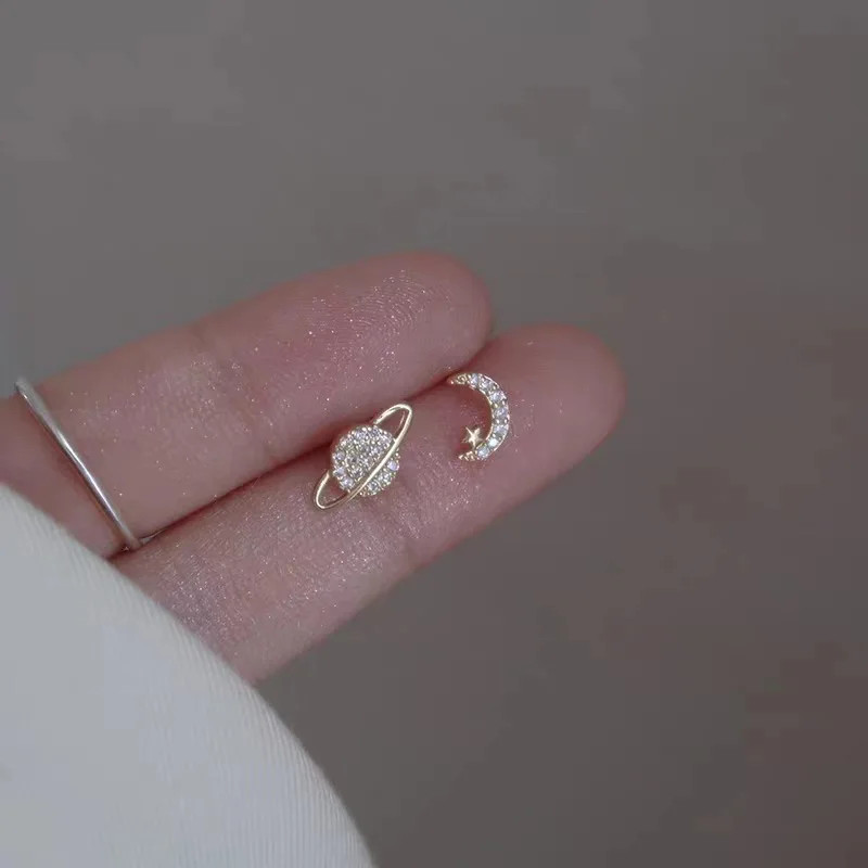 S925 Prata Moda Planeta Brincos Piercing Para Mulheres Lua Estrela Zircão Orelha Parafuso Prisioneiro presente de natal