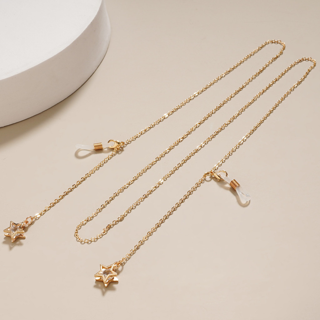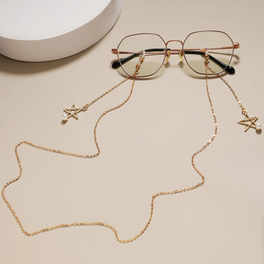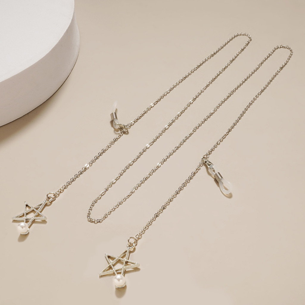 Óculos corrente Metal pescoço pérola pentagrama pingente pescoço desgaste metal óculos cadeia