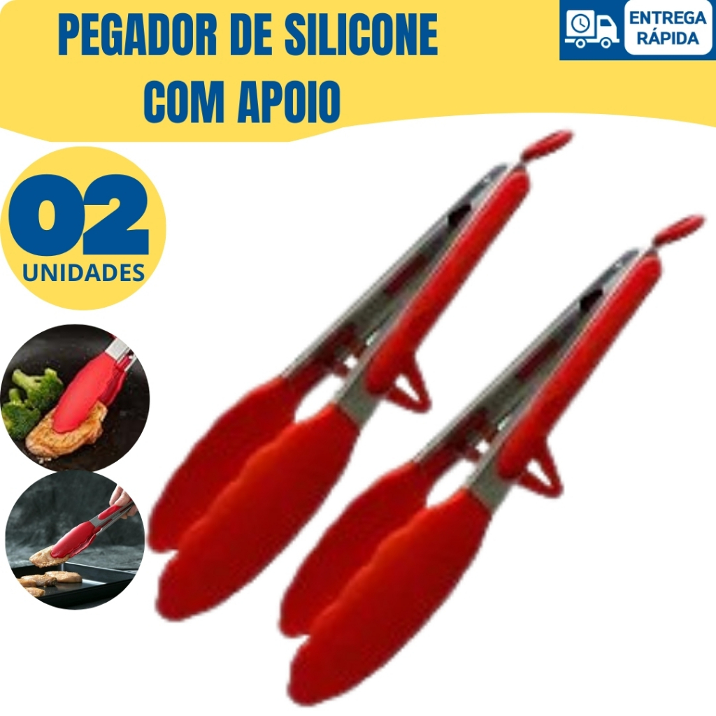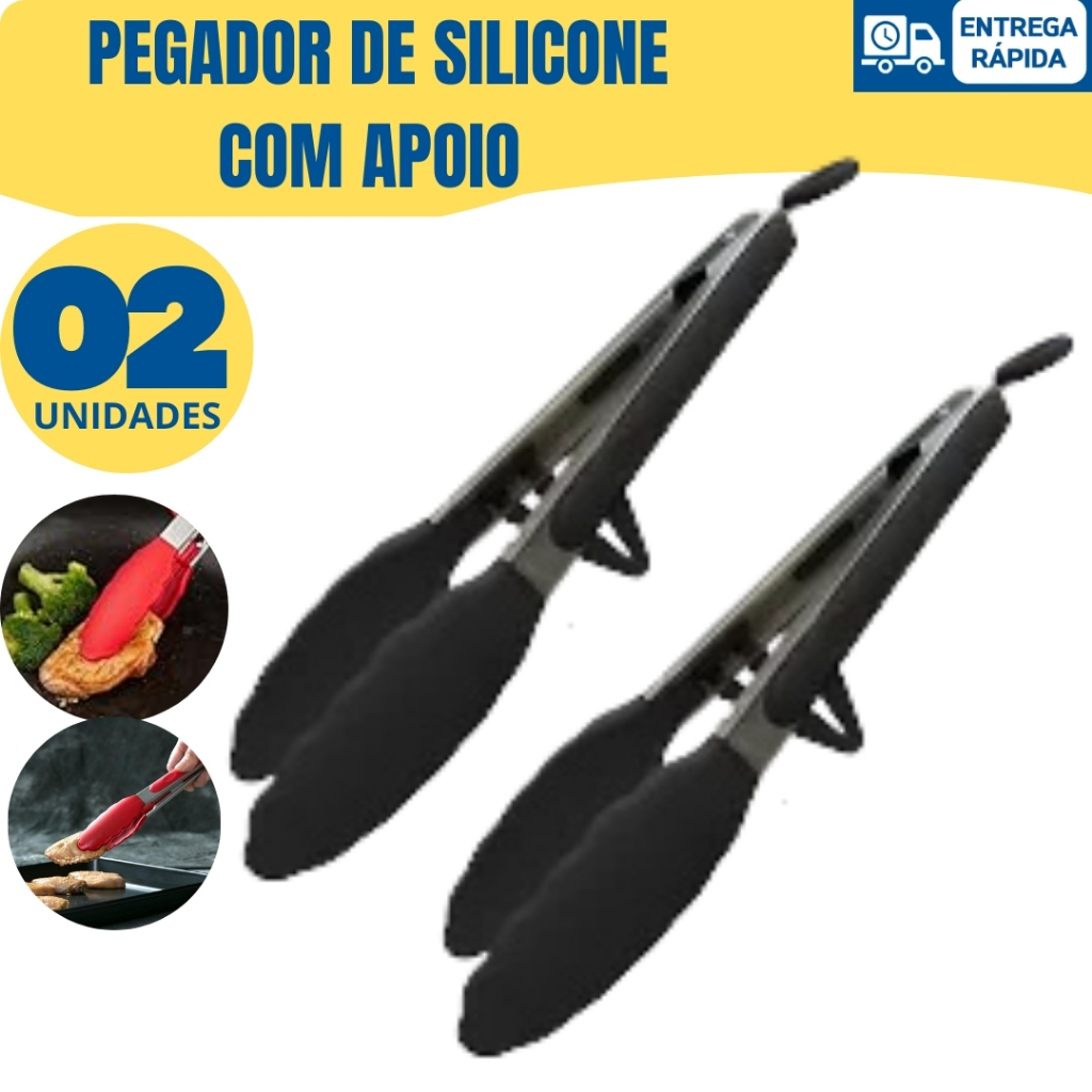 Kit Pegador de Silicone e Inox com Apoio para Carne Salada Massas Buffet Restaurante