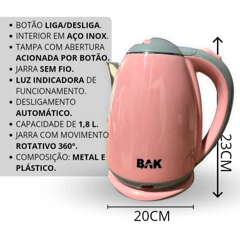 Chaleira Elétrica Bak 1,8 L Led Desliga Automatico Cor Rosa 110V-220V