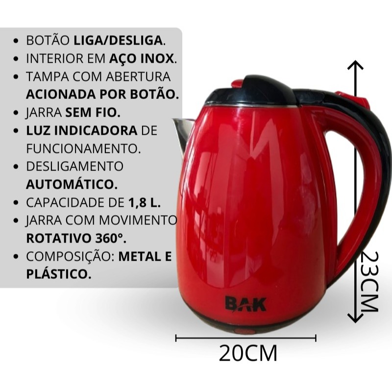 Chaleira Elétrica Bak 1,8 L Led Desliga Automatico Cor Vermelha 110V-220V