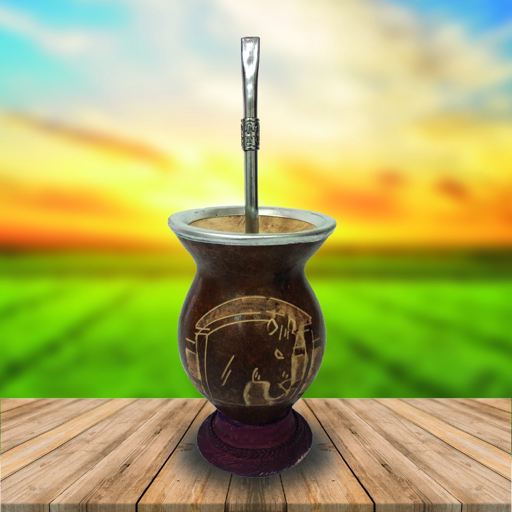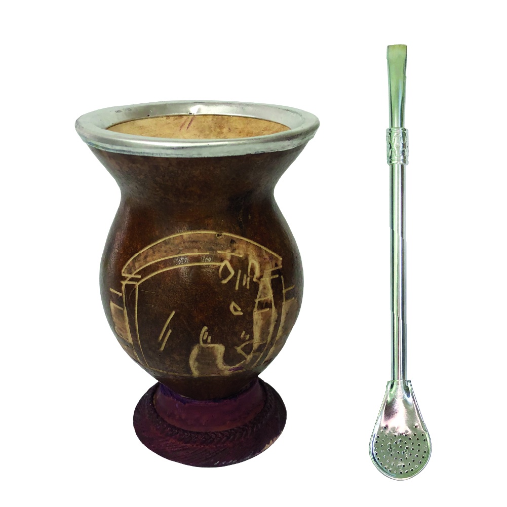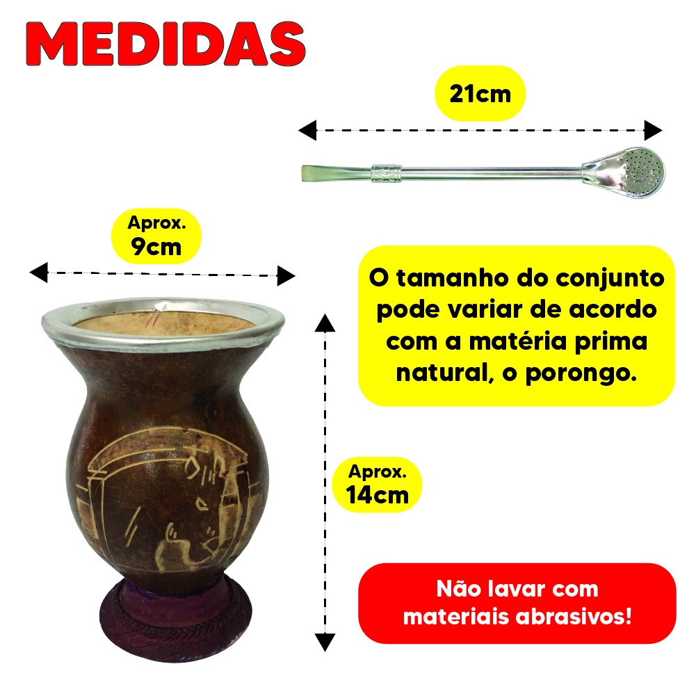 Kit Conjunto Chimarrão Cuia Martelada com Suporte e Bomba