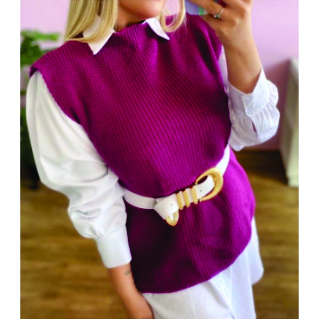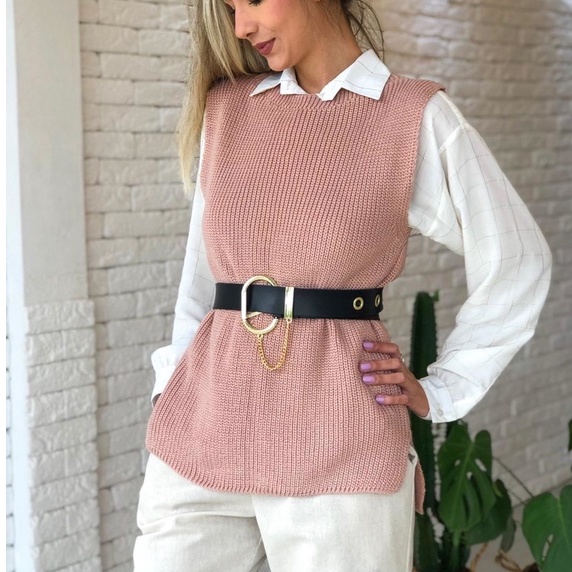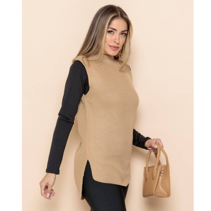Colete Tricot Sueter Pulover Feminino Tricô Fenda Lateral regata trico