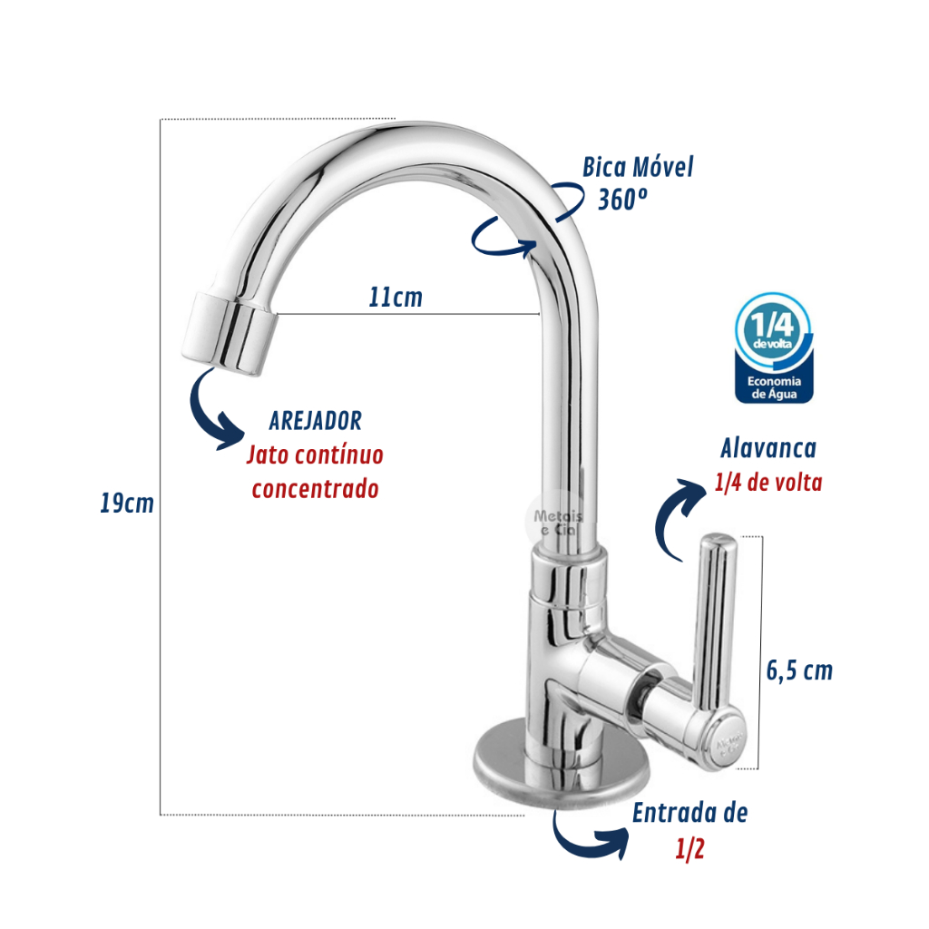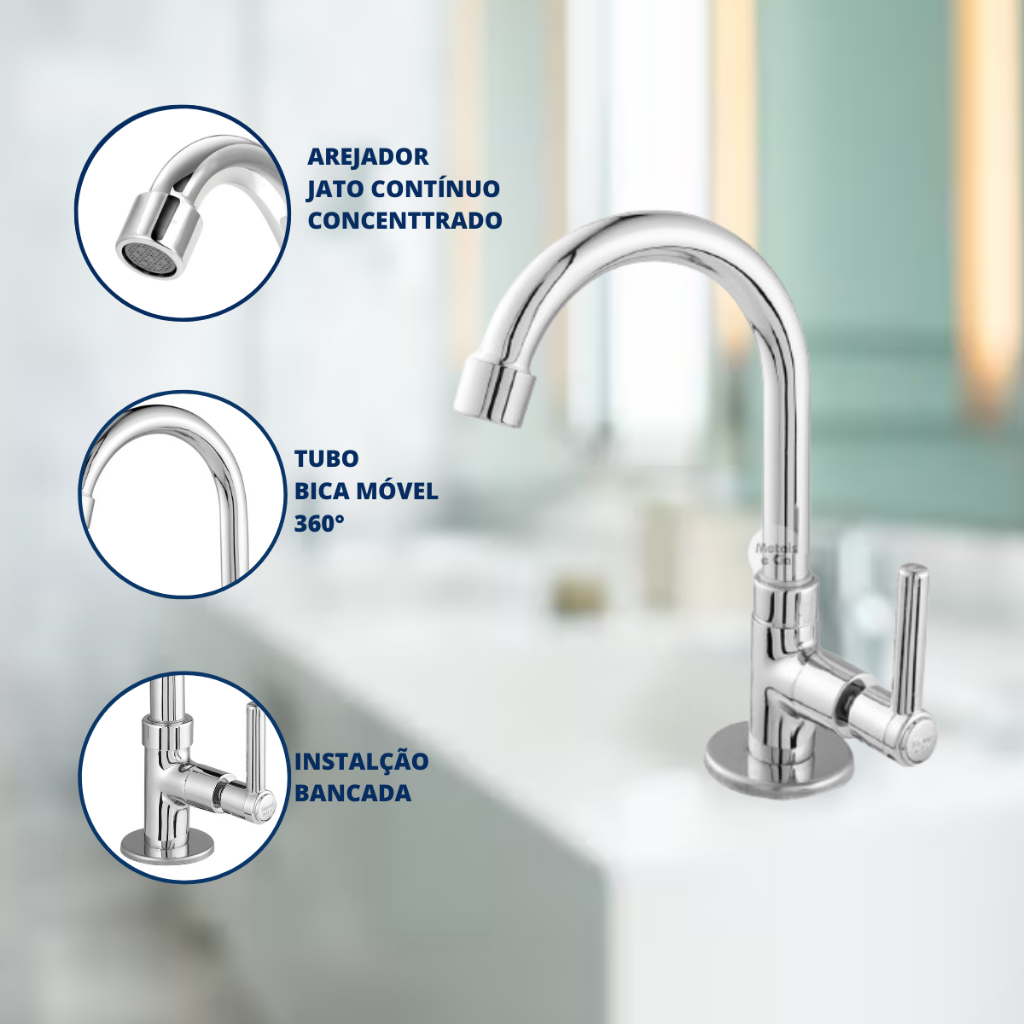 Torneira De Banheiro Lavatório Lavabo Mesa Bica Móvel 1/4 Volta Inox