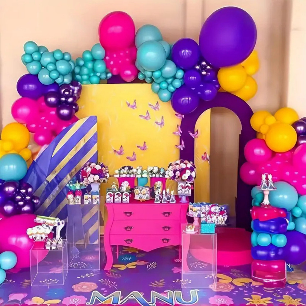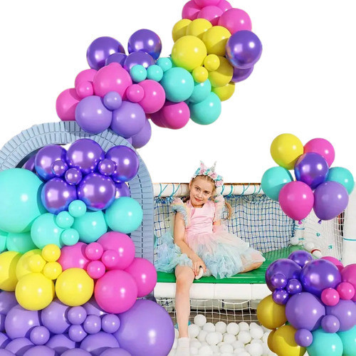 Kit 125 Balões Roxo Amarelo Lilás Bexiga Decoração P/Festa Aniversário Arco Desconstruido+Fita 5Mts