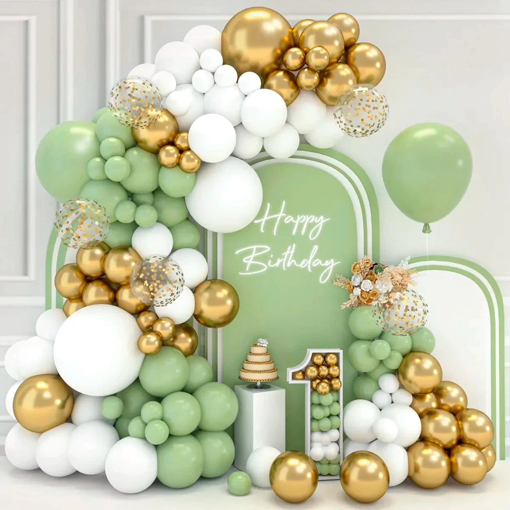 Kit 115 Balões Verde Dourado Bexiga Ouro Arco Desconstruido + Fita 5Mts Decoração Aniversário