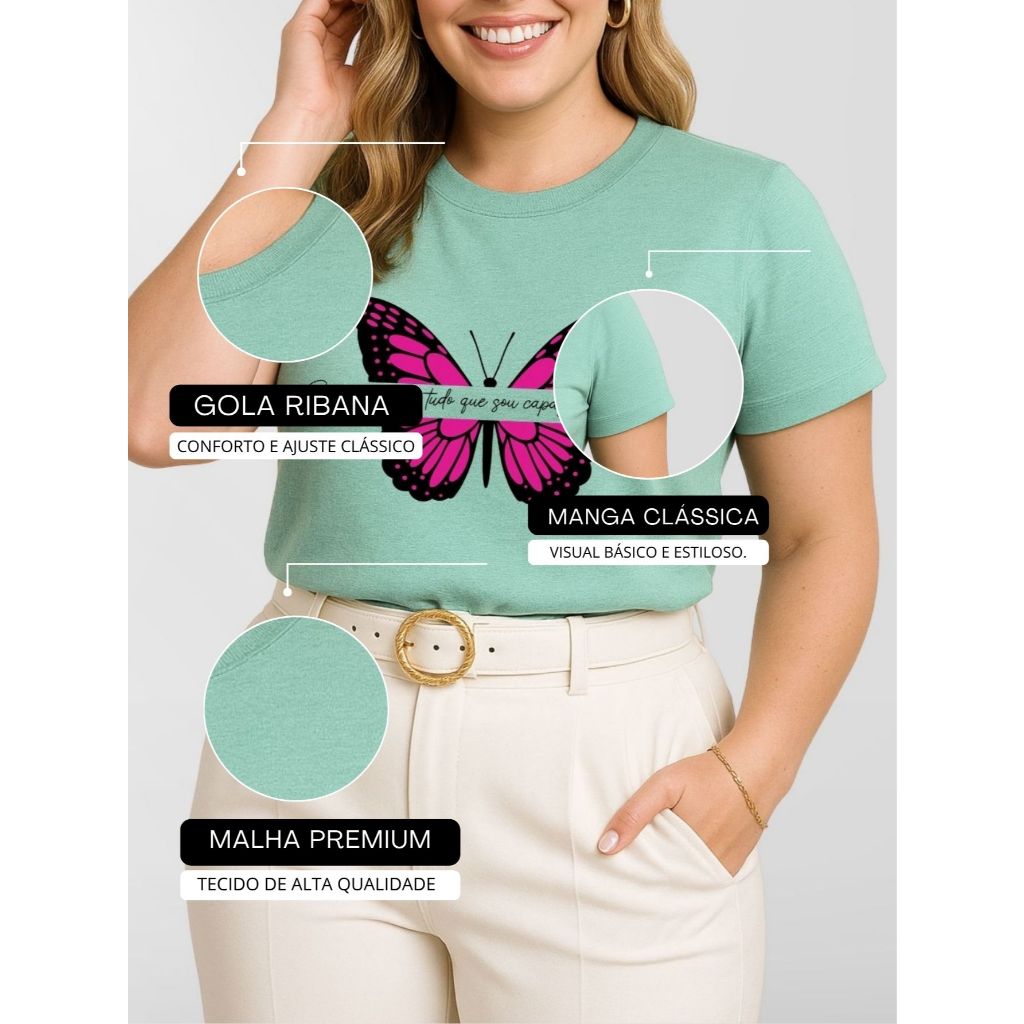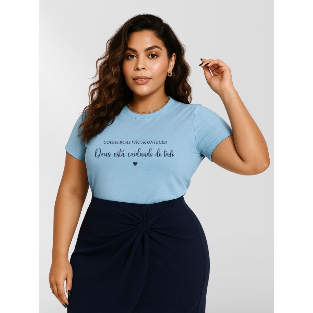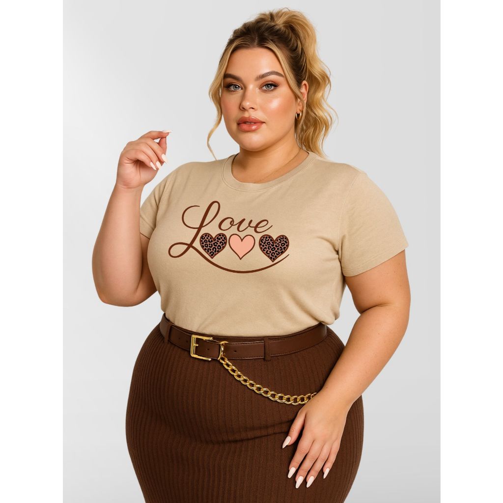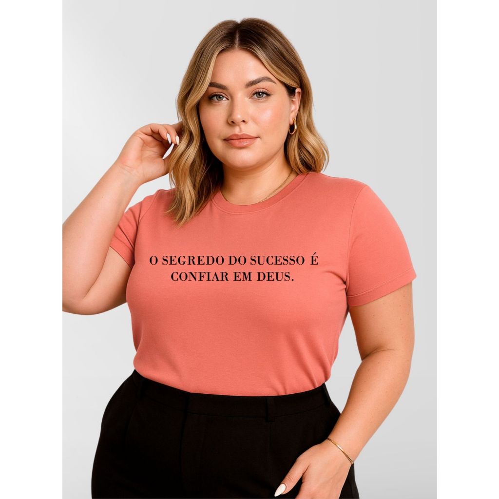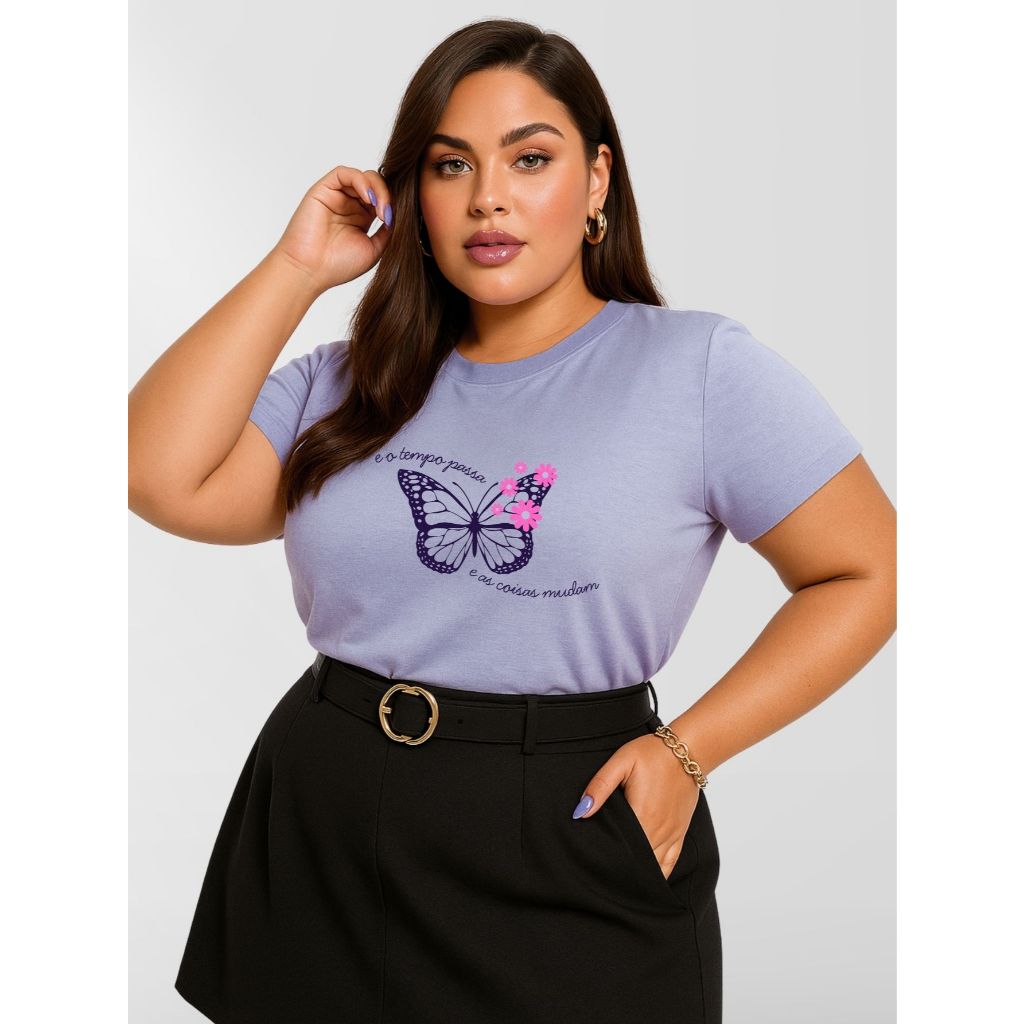 Blusa Feminina Plus Size Manga Curta 100% Algodão Malha Premium