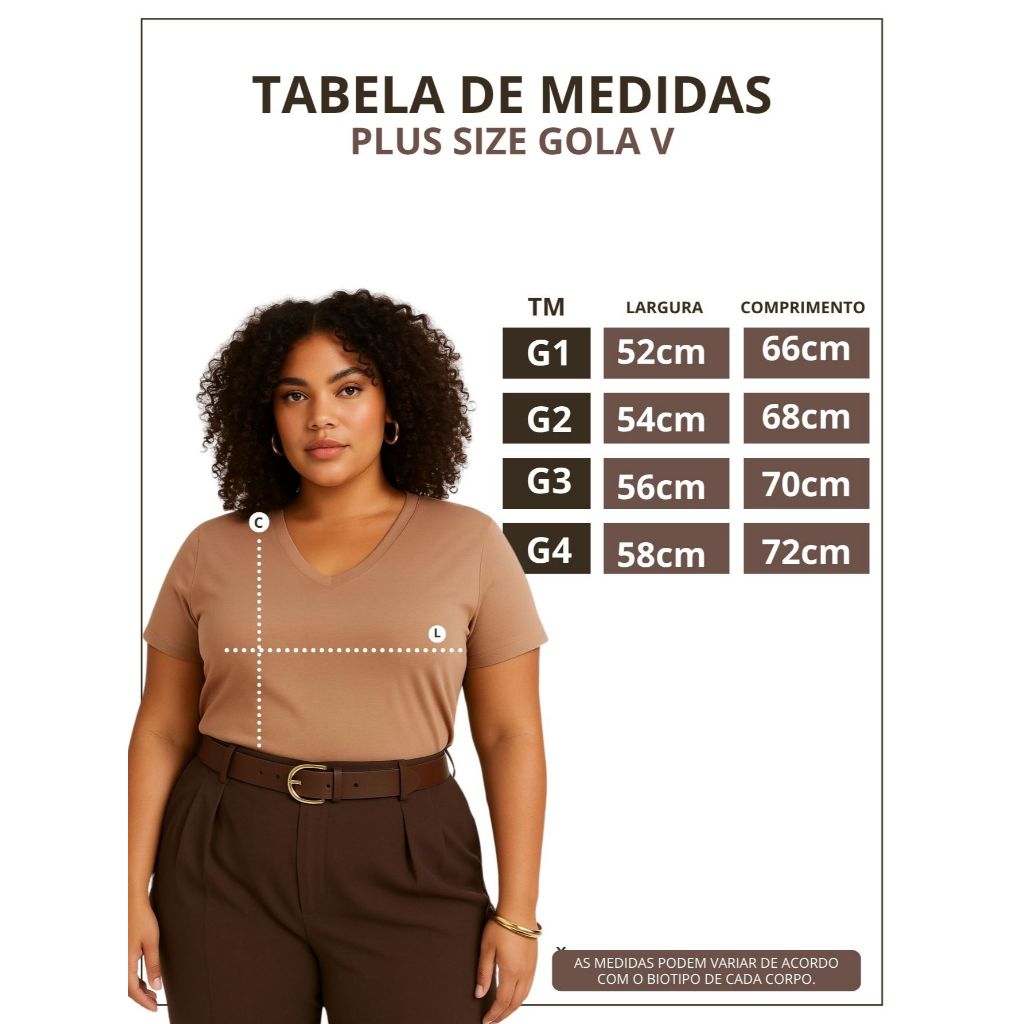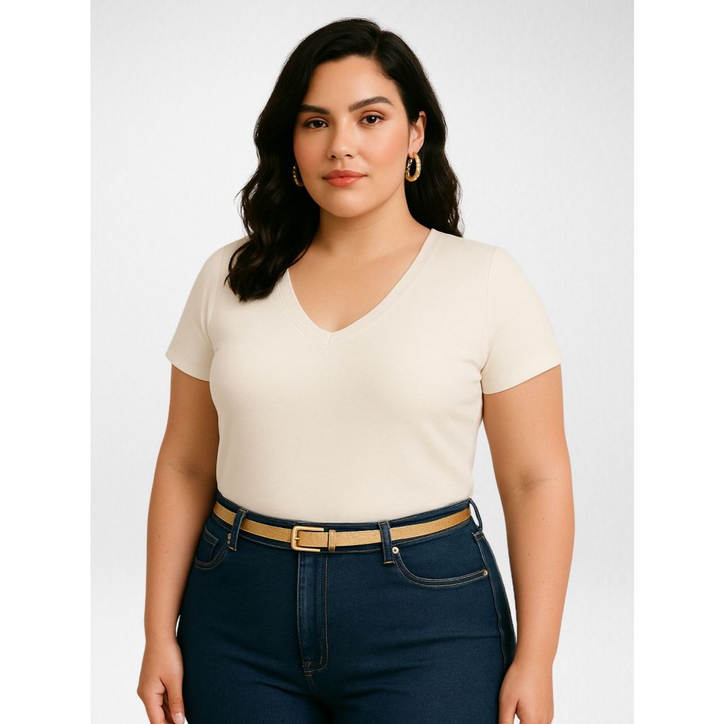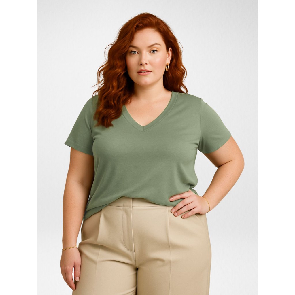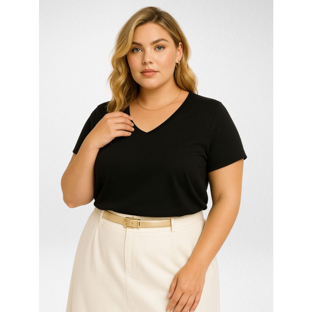Kit 3 Blusas Feminina Plus Size Gola V Básica Casual - H00
