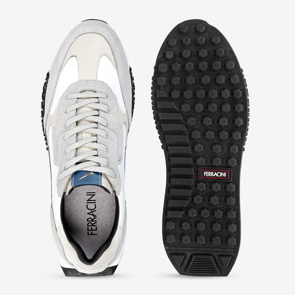 Tênis Masculino Ferracini Couro Legitimo Atacador Racer Solado Flat Racer Cinza Azul 8529-693B