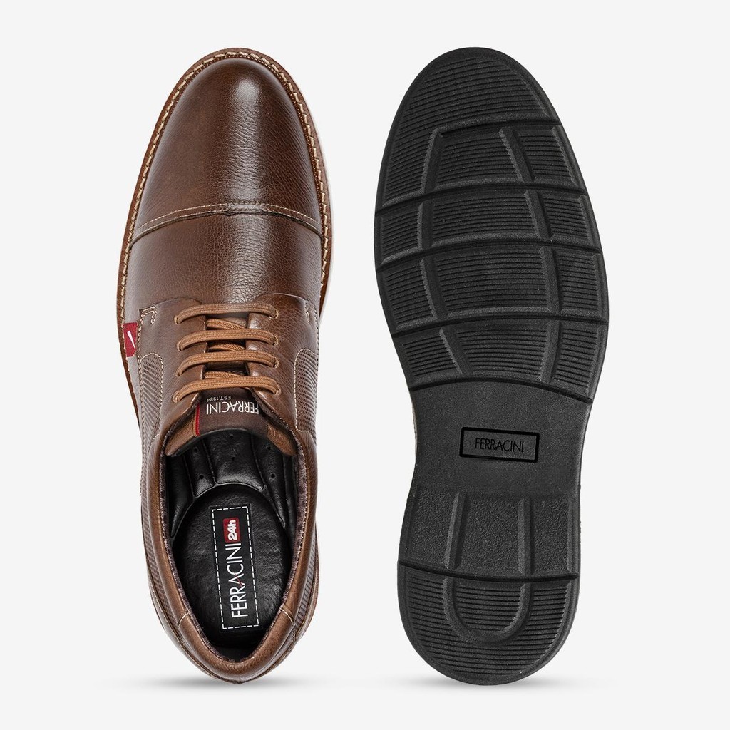Sapato Casual Masculino Couro Legitimo Ferracini Cadarço Comfort Leve Kingston Marrom 6151-675I