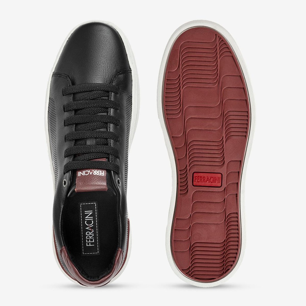 Tênis Masculino Ferracini Couro Fechamento Elástico Preto Solado Branco Gold 2077B