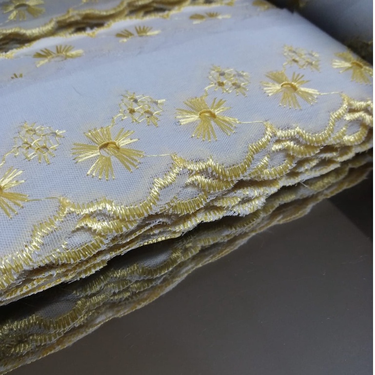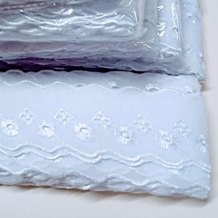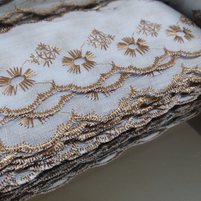 Bordado Inglês 5cm Largura - PEÇA 13.70 METROS, Lese Renda Tira Bordada