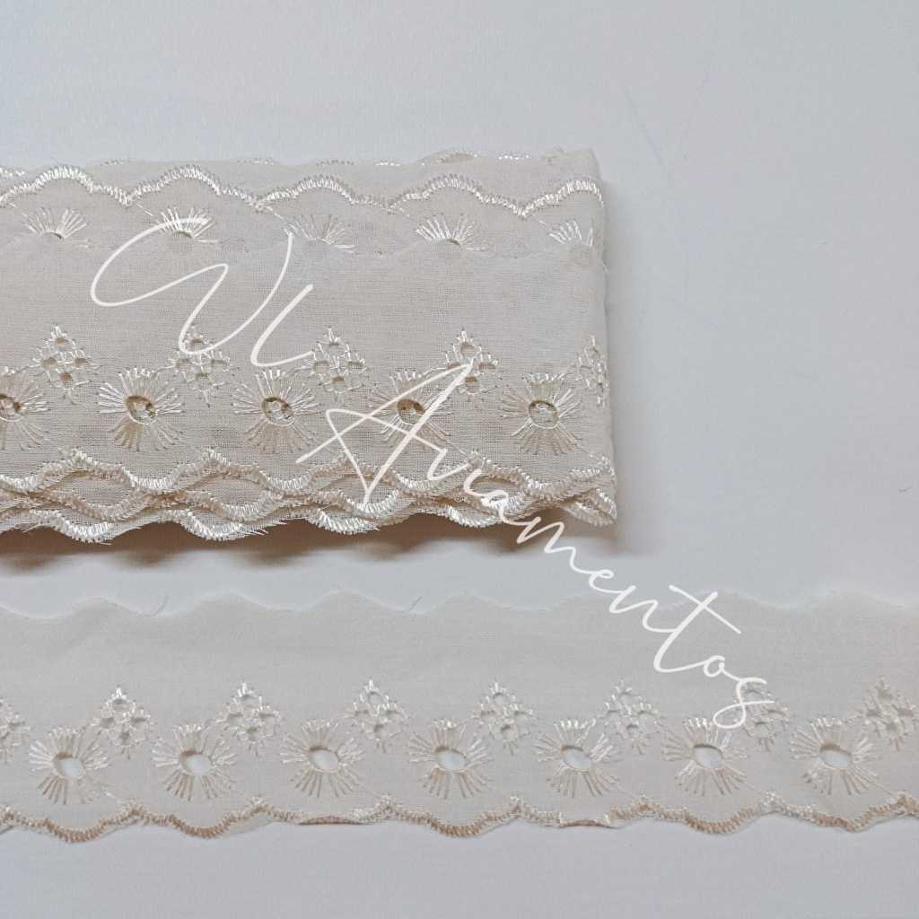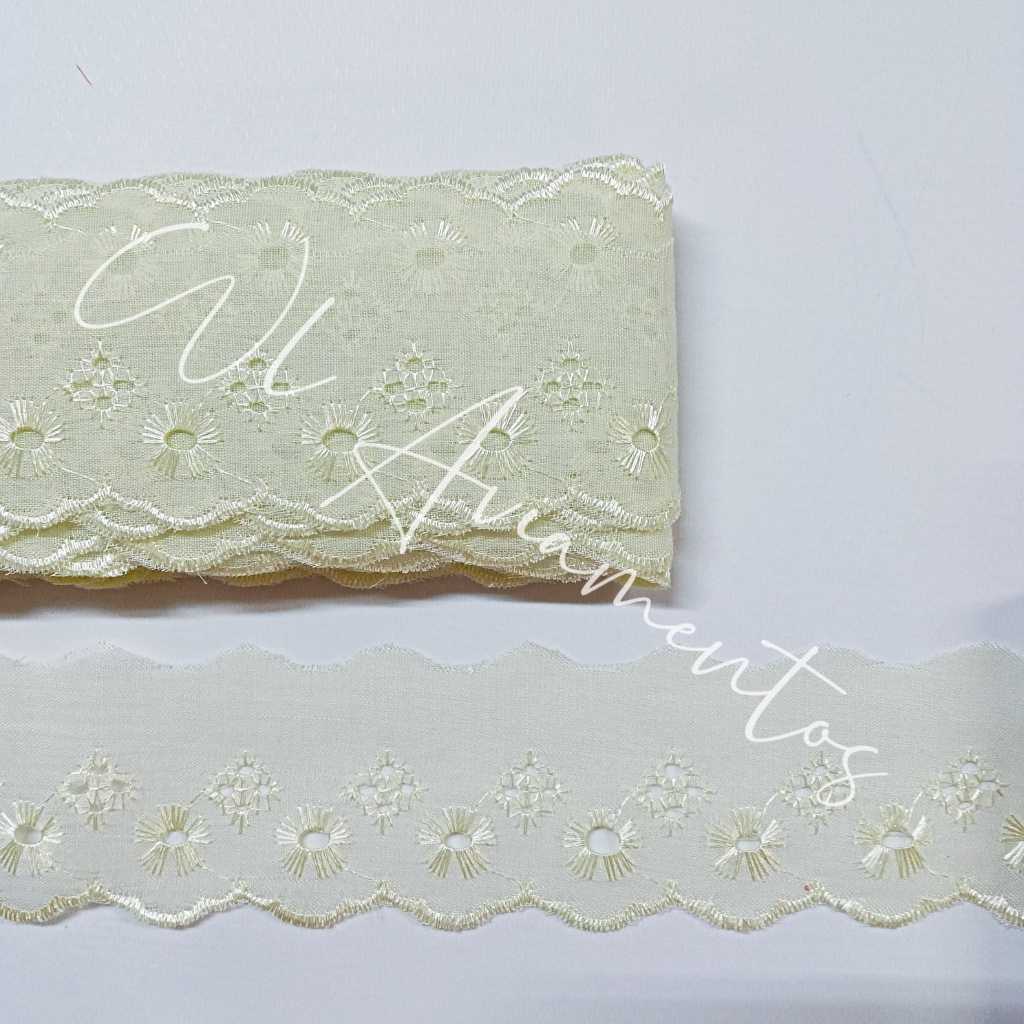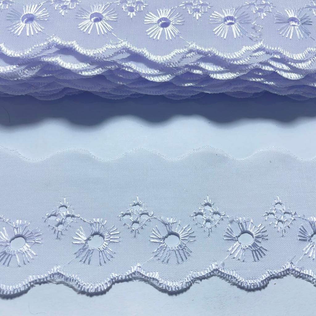 Bordado Inglês 5cm Peça com 13,7 metros - Lese Bico Tira Bordada - 90% Poliéster 10% Algodão