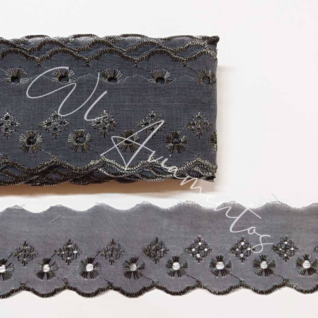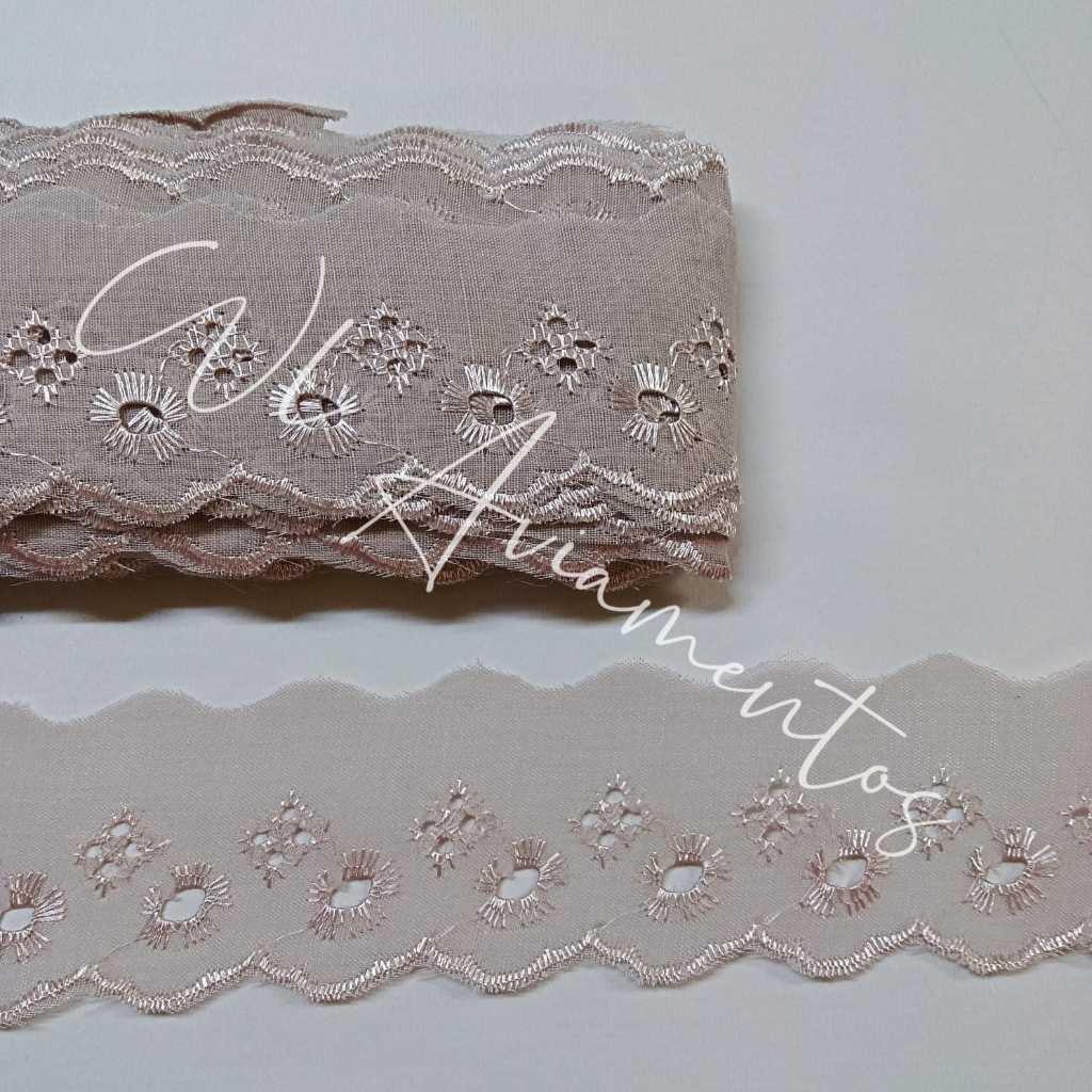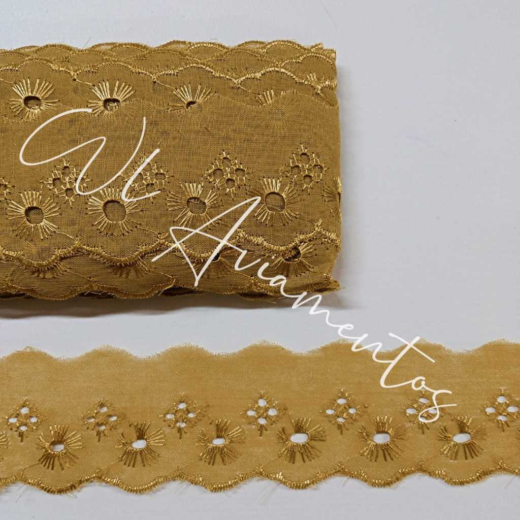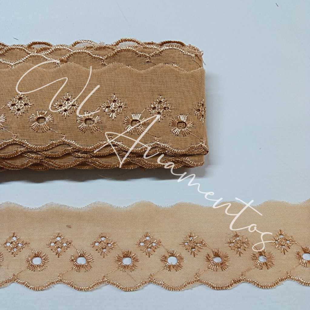 Bordado Inglês 5cm Peça com 13,7 metros - Lese Bico Tira Bordada - 90% Poliéster 10% Algodão